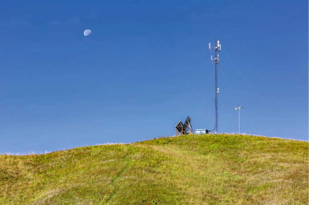 2019年9月19日,新疆維吾爾自治區(qū)伊犁哈薩克自治州新源縣那拉提鎮(zhèn),草原移動信號塔。