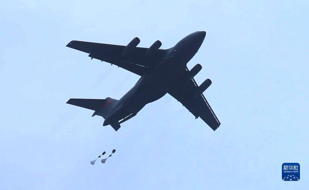 中國空軍大型運輸機運-20與空降兵部隊聯(lián)合開展空降空投訓練(資料照片)。新華社發(fā)