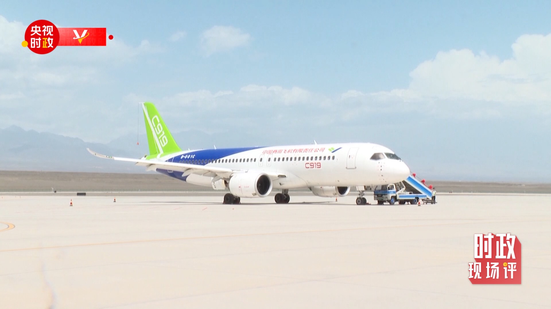 △在吐魯番開展高溫專項試飛的國產C919客機
