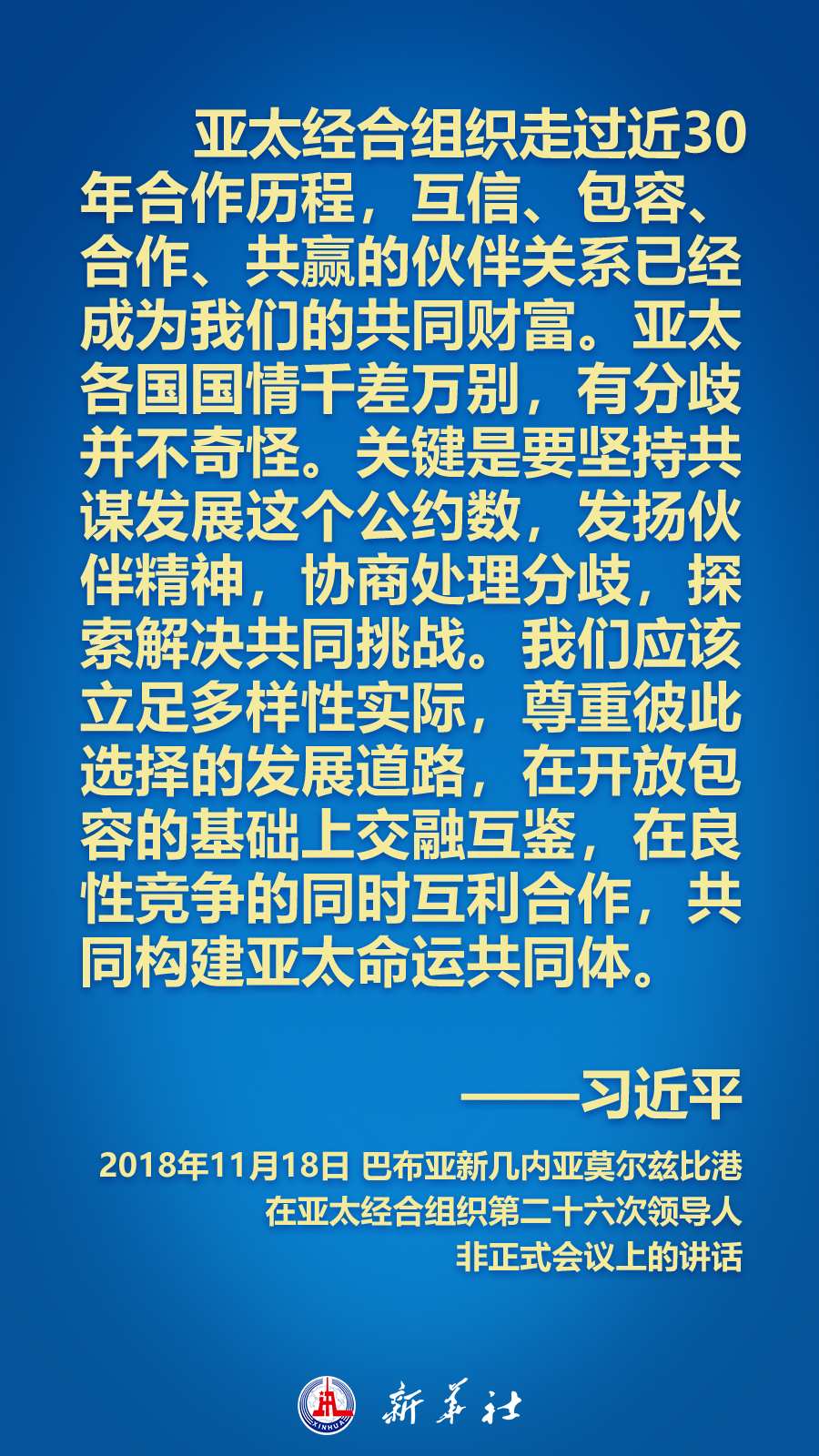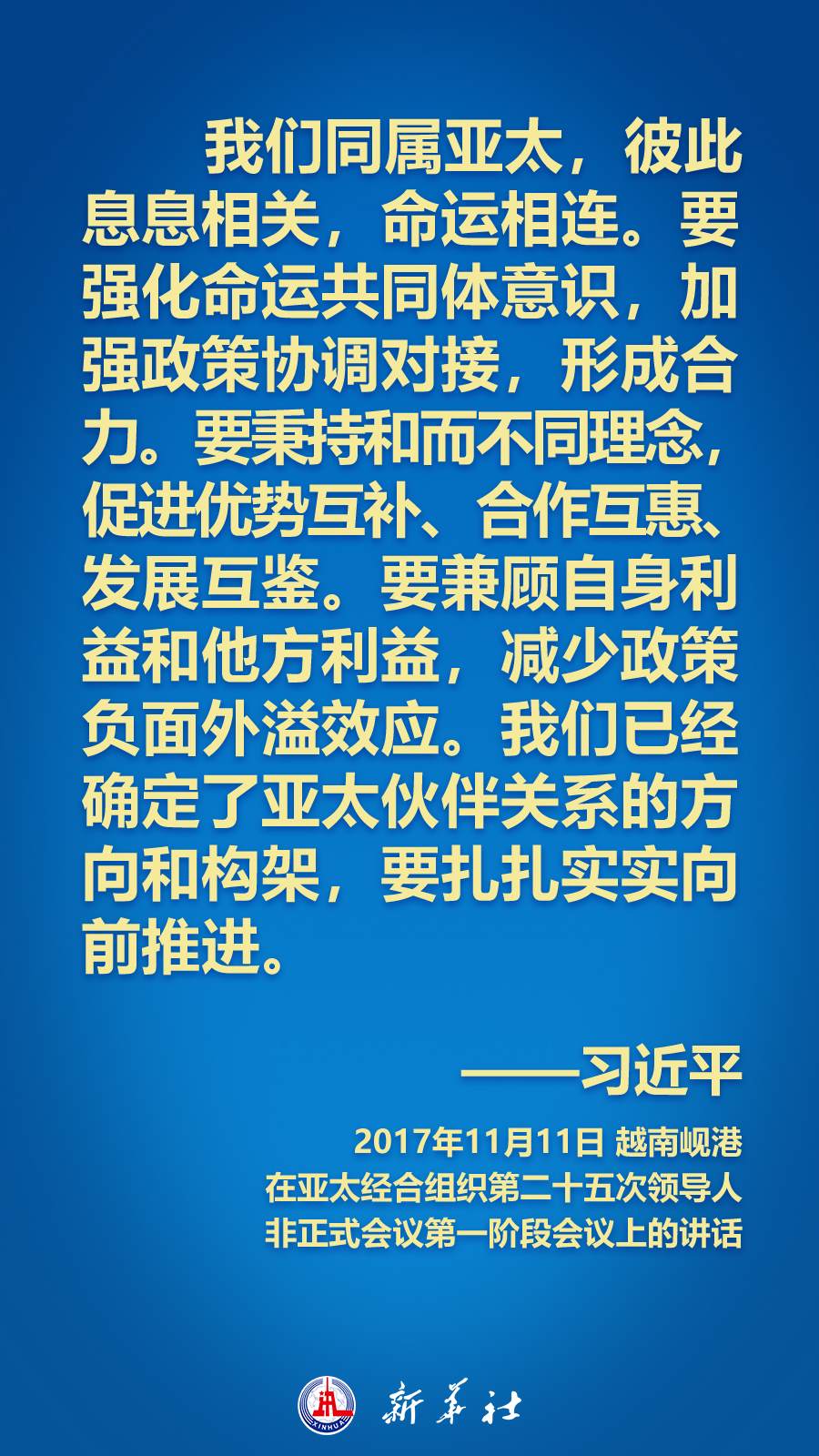 在以往的亞太經(jīng)合組織領(lǐng)導(dǎo)人非正式會議上,習(xí)近平主席多次闡述構(gòu)建開放包容、創(chuàng)新增長、互聯(lián)互通、合作共贏的亞太命運共同體的理念主張和重大意義,為亞太乃至全球經(jīng)濟發(fā)展指明方向,注入強勁動力。