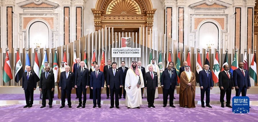 當(dāng)?shù)貢r(shí)間12月9日下午,首屆中國(guó)-阿拉伯國(guó)家峰會(huì)在沙特首都利雅得阿卜杜勒阿齊茲國(guó)王國(guó)際會(huì)議中心舉行。國(guó)家主席習(xí)近平和沙特王儲(chǔ)兼首相穆罕默德、埃及總統(tǒng)塞西、約旦國(guó)王阿卜杜拉二世、巴林國(guó)王哈馬德、科威特王儲(chǔ)米沙勒、突尼斯總統(tǒng)賽義德、吉布提總統(tǒng)蓋萊、巴勒斯坦總統(tǒng)阿巴斯、卡塔爾埃米爾塔米姆、科摩羅總統(tǒng)阿扎利、毛里塔尼亞總統(tǒng)加茲瓦尼、伊拉克總理蘇達(dá)尼、摩洛哥首相阿赫努什、阿爾及利亞總理阿卜杜拉赫曼、黎巴嫩總理米卡提等21個(gè)阿盟國(guó)家領(lǐng)導(dǎo)人以及阿拉伯國(guó)家聯(lián)盟秘書(shū)長(zhǎng)蓋特等國(guó)際組織負(fù)責(zé)人出席峰會(huì)。習(xí)近平在會(huì)上發(fā)表題為《弘揚(yáng)中阿友好精神 攜手構(gòu)建面向新時(shí)代的中阿命運(yùn)共同體》的主旨講話(huà)。新華社記者 謝環(huán)馳 攝