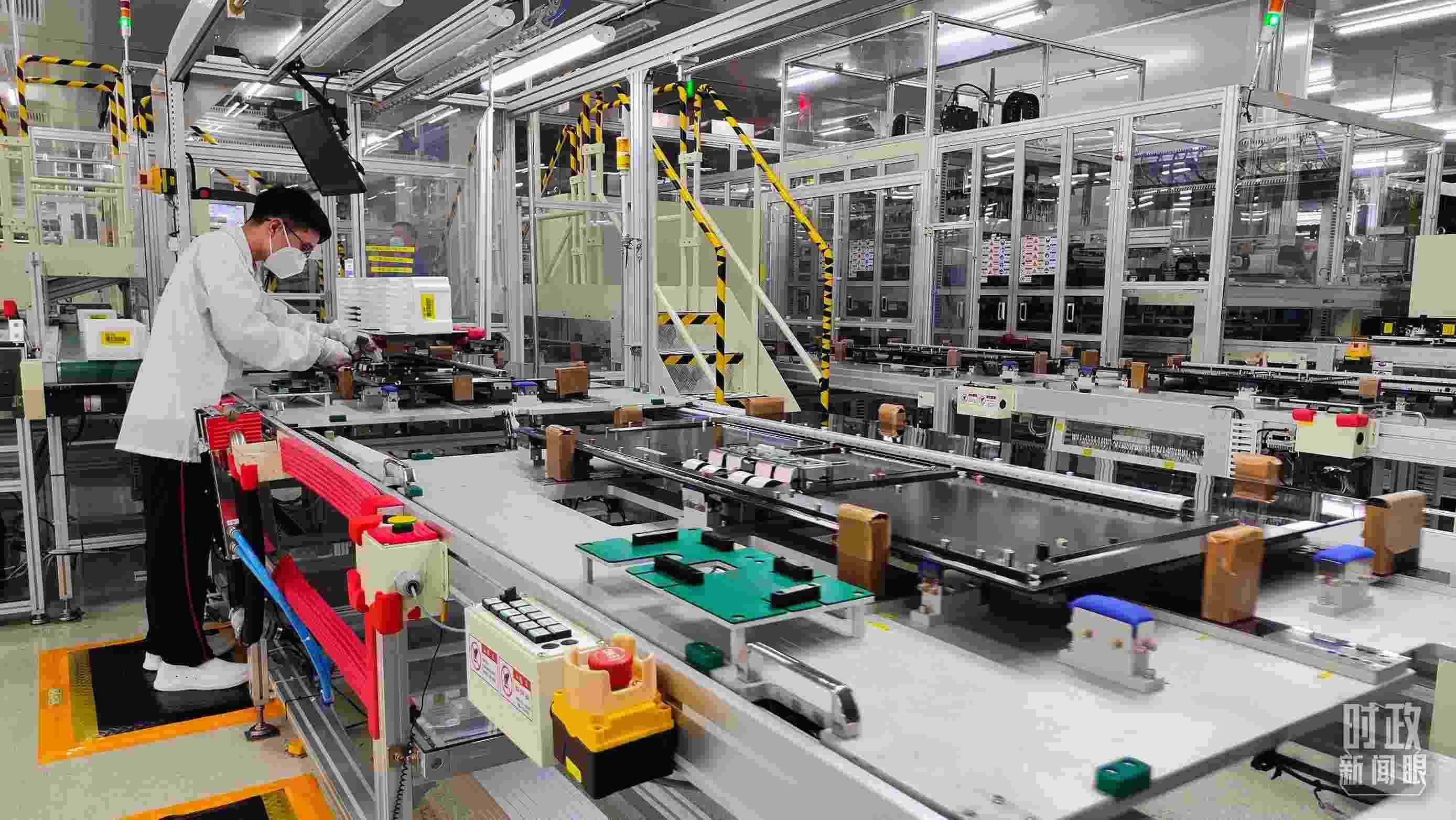 △廣汽埃安總裝車間智能生產(chǎn)線展示。(總臺央視記者趙化拍攝)