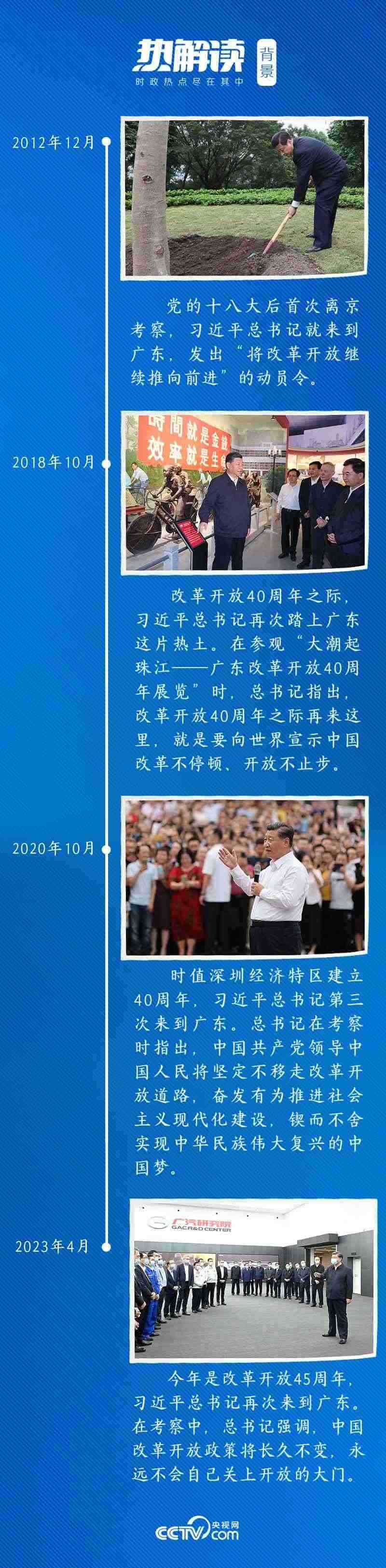 改革開放是廣東最鮮明特征。黨的十八大以來,習近平總書記四次到廣東考察,“改革開放”每次都是考察的關鍵詞。