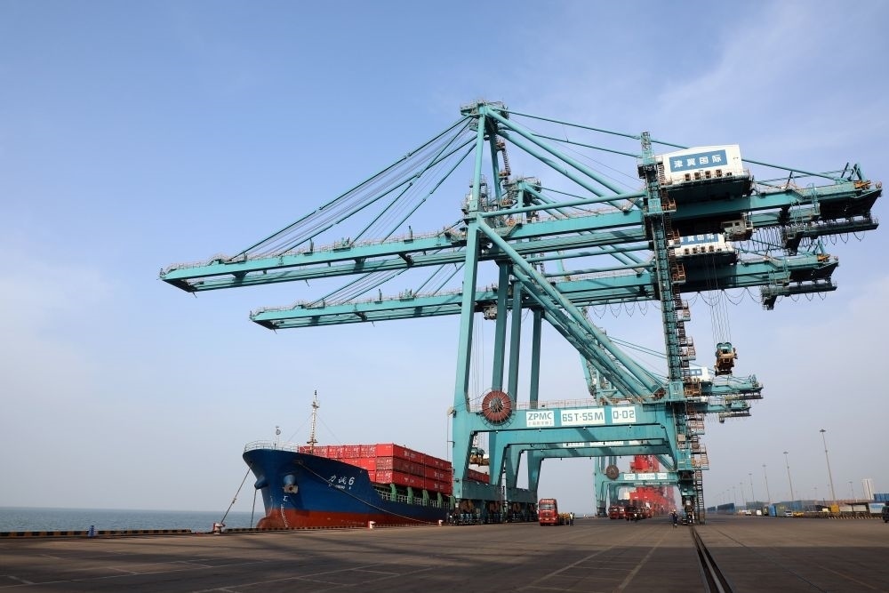 3月9日,船舶停靠在黃驊港綜合港區(qū)集裝箱碼頭進(jìn)行卸船作業(yè)。新華社記者 駱學(xué)峰 攝
