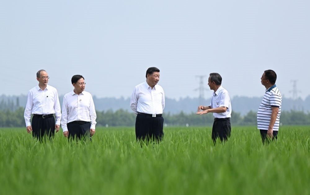 2022年6月8日,習(xí)近平在四川眉山市東坡區(qū)太和鎮(zhèn)永豐村高標(biāo)準(zhǔn)水稻種植基地考察,了解水稻試驗(yàn)育種和種植推廣情況。