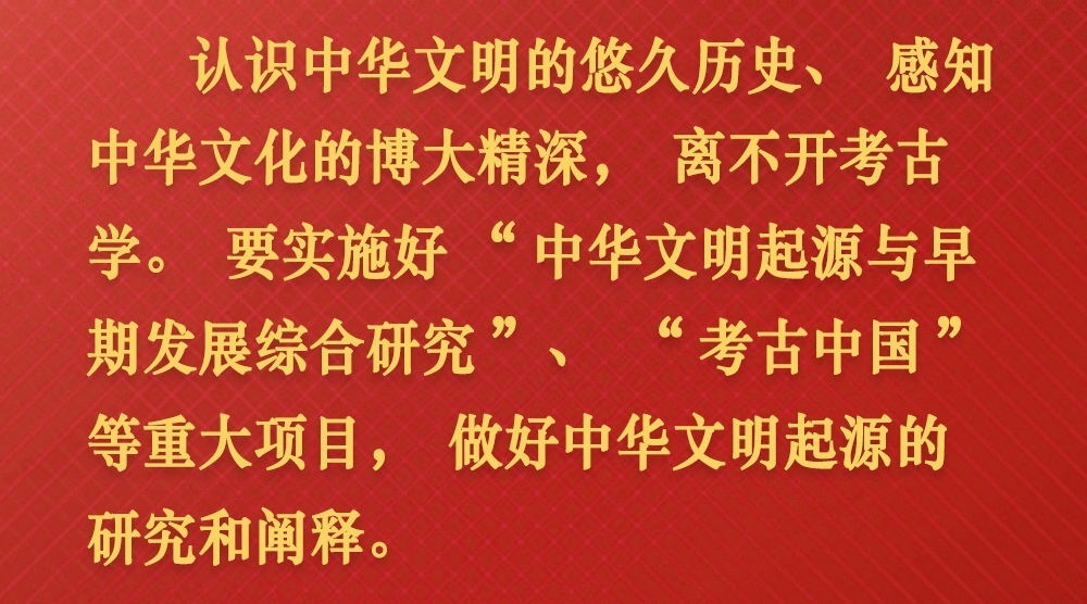 習(xí)近平走進(jìn)院內(nèi)的中國(guó)考古博物館,先后參觀文明起源和宅茲中國(guó)專題展,了解新石器時(shí)代和夏商周時(shí)期重大考古發(fā)現(xiàn),并不時(shí)詢問(wèn)相關(guān)研究工作進(jìn)展。
