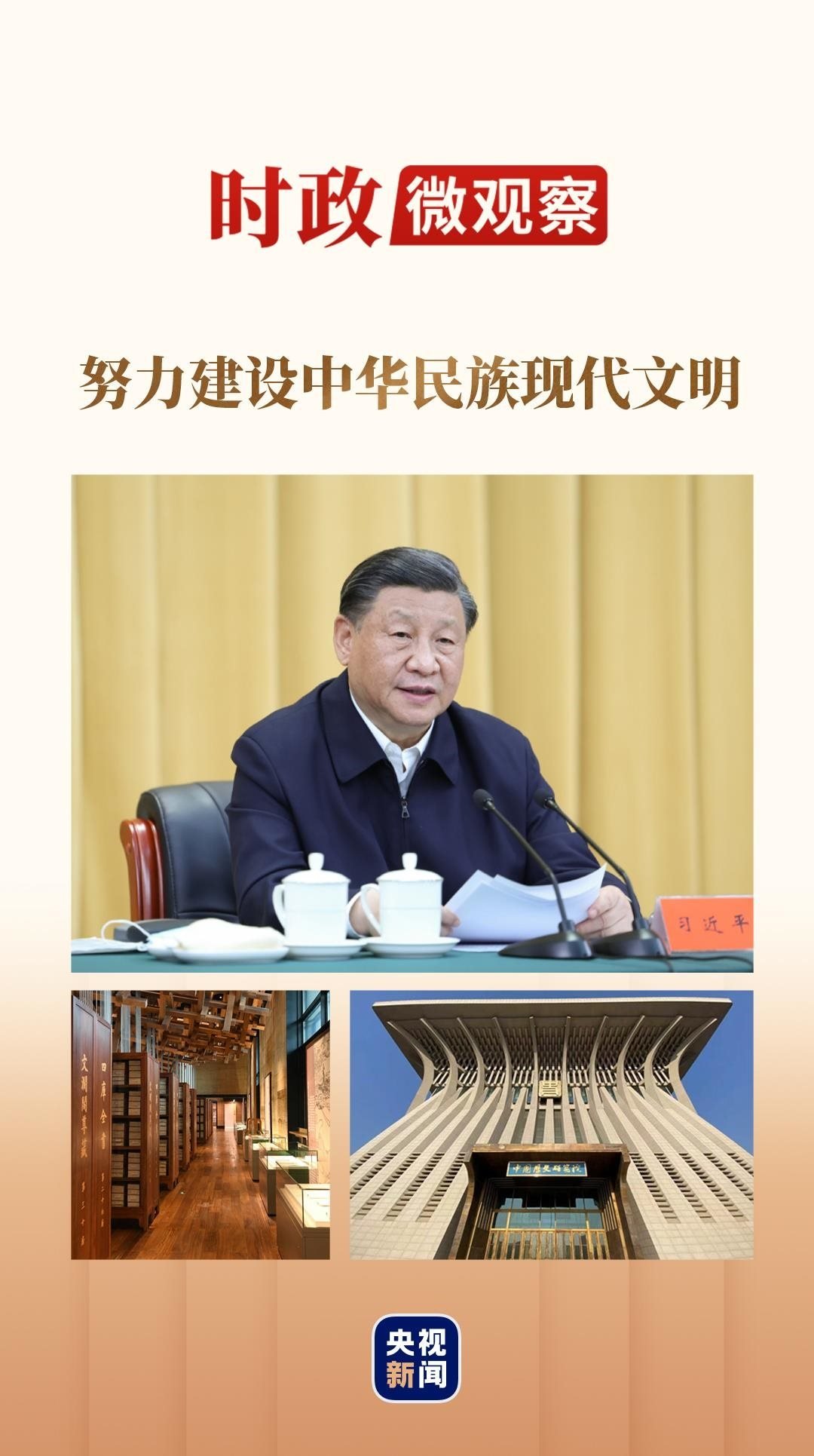 翌日,總書記又乘車來到中國歷史研究院,參觀文明起源和宅茲中國專題展,察看部分館藏珍貴古籍和文獻(xiàn)檔案,寄語“為中國式現(xiàn)代化建設(shè)貢獻(xiàn)更多中國史學(xué)的智慧和力量”。