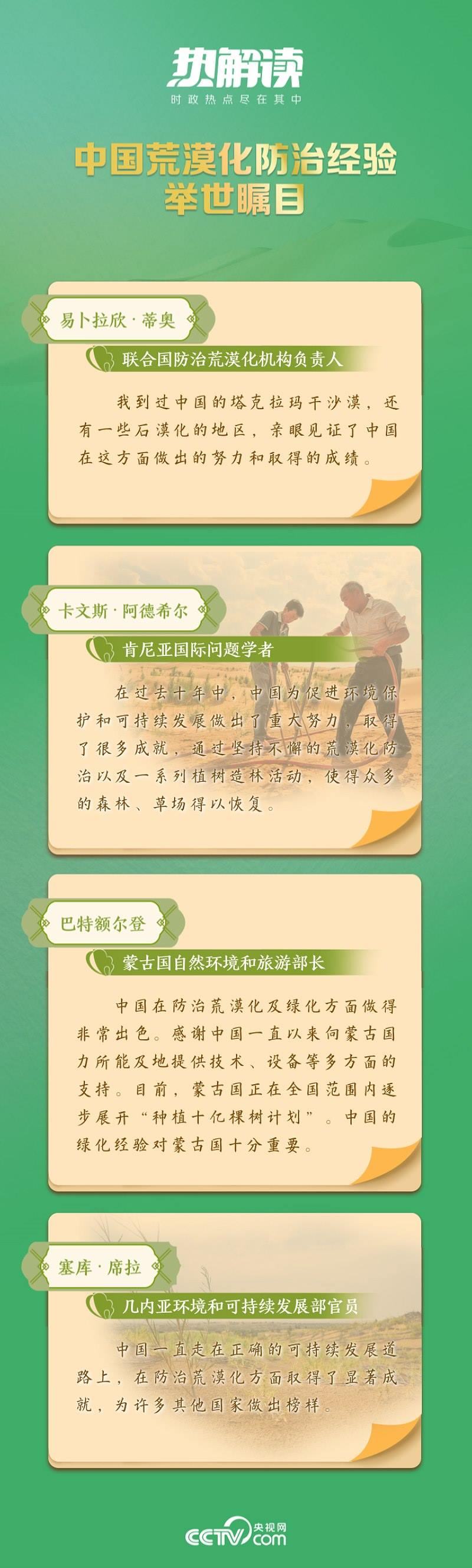 從“荒漠化防治是人類功在當代、利在千秋的偉大事業(yè)”,到“防治荒漠化是人類面臨的共同挑戰(zhàn),需要國際社會攜手應對”,再到“堅持系統(tǒng)觀念,扎實推進山水林田湖草沙一體化保護和系統(tǒng)治理”……在習近平生態(tài)文明思想指引下,中國積極行動,形成了政府主導、全民參與、科技支撐、法規(guī)保障的治沙模式,取得了顯著成效。