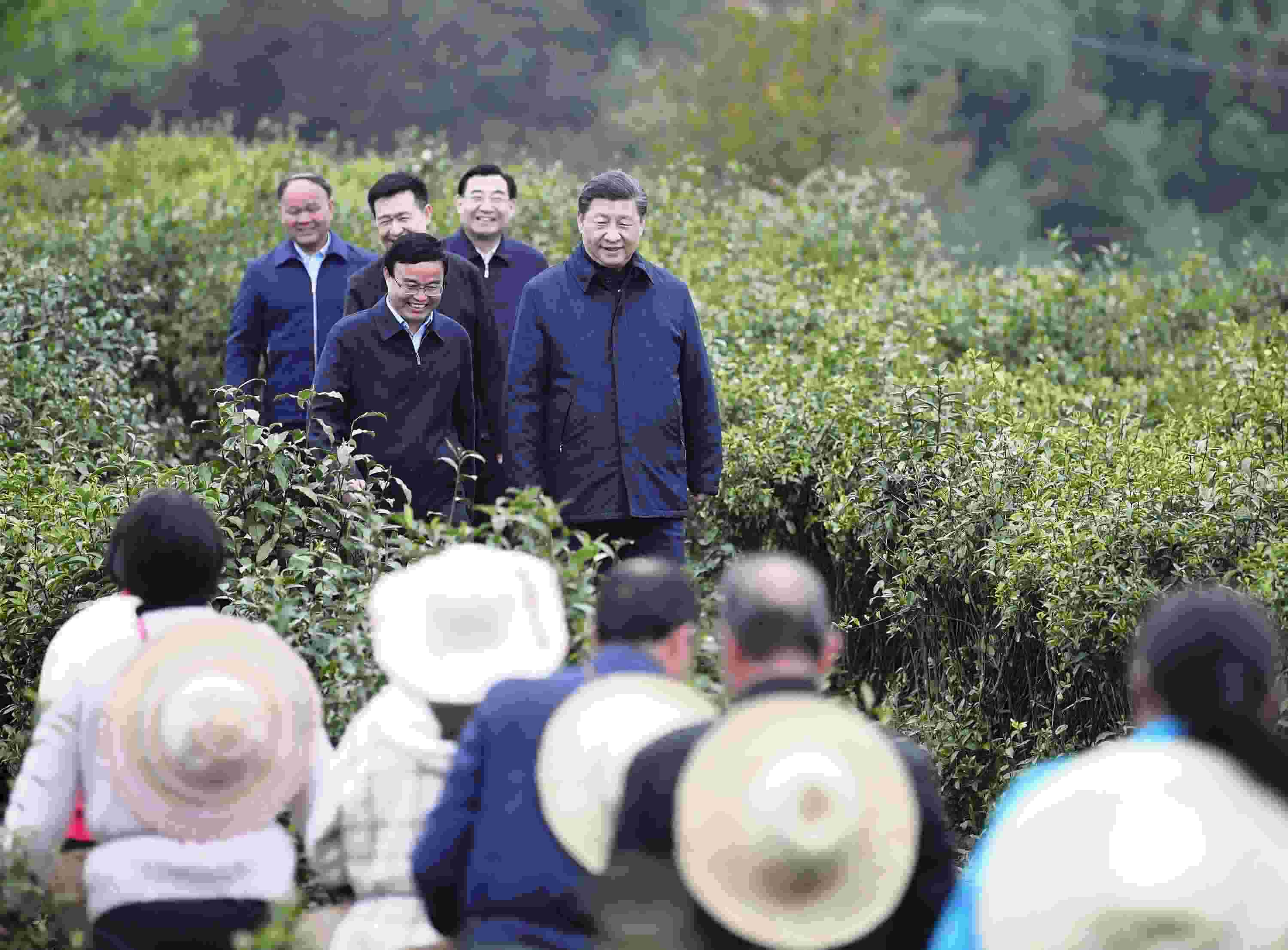 2020年4月21日,在陜西考察的習(xí)近平總書記來到平利縣女媧鳳凰茶業(yè)現(xiàn)代示范園區(qū)考察脫貧攻堅(jiān)。一張照片定格了“五級(jí)書記”共抓扶貧的瞬間。