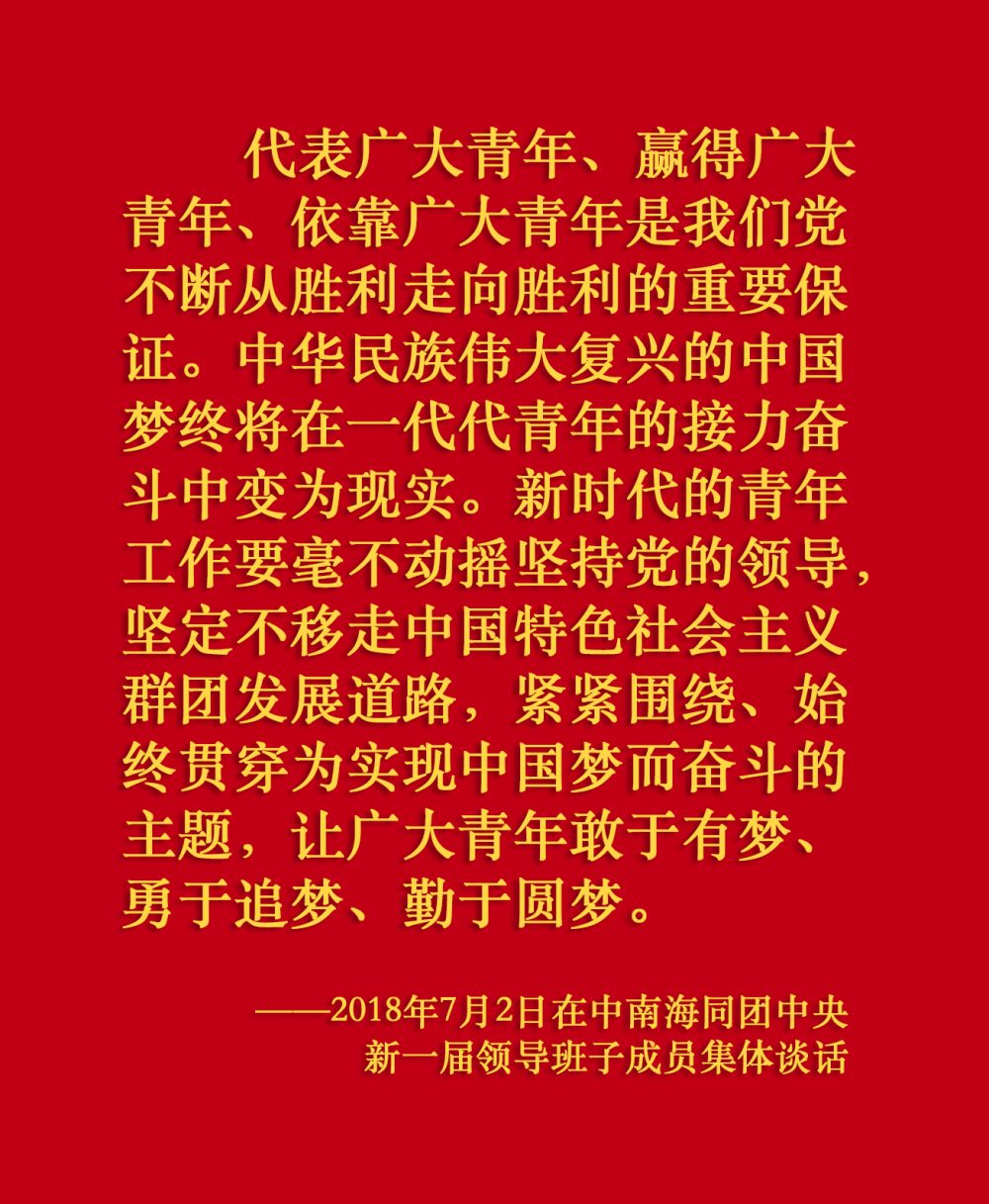 在慶祝中國(guó)共產(chǎn)主義青年團(tuán)成立100周年大會(huì)上,習(xí)近平總書記從黨和國(guó)家事業(yè)發(fā)展全局出發(fā),給共青團(tuán)明確提出了4點(diǎn)希望,飽含深情、催人奮進(jìn)。
