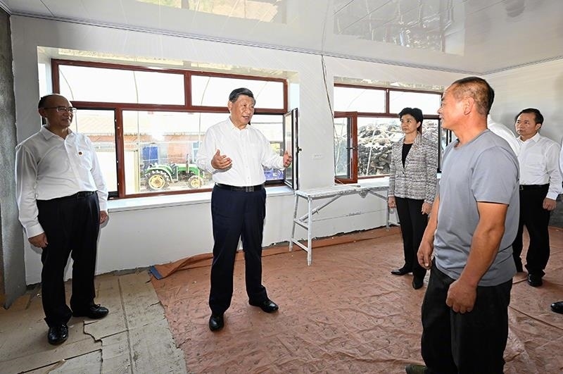 △9月7日,習近平總書記在黑龍江尚志市老街基鄉(xiāng)龍王廟村看望慰問受災群眾。