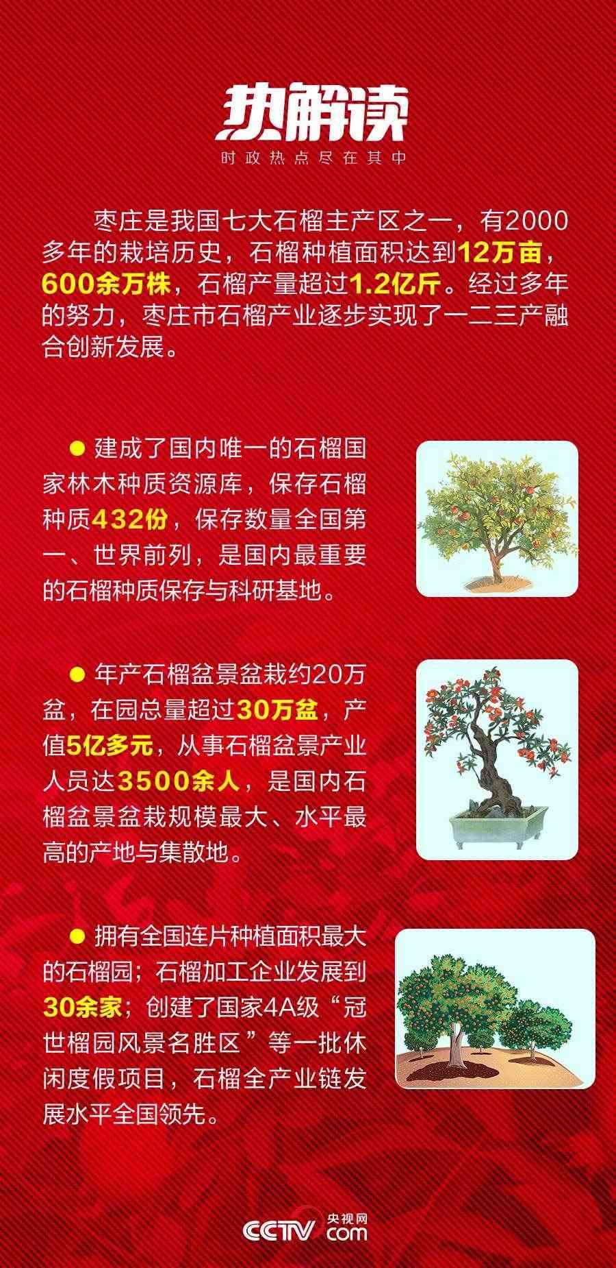 “人們生活水平在提高,優(yōu)質(zhì)特產(chǎn)市場需求在增長,石榴產(chǎn)業(yè)有發(fā)展?jié)摿?。”在棗莊嶧城區(qū)冠世榴園,總書記對(duì)于發(fā)展“土特產(chǎn)”的思路一以貫之。