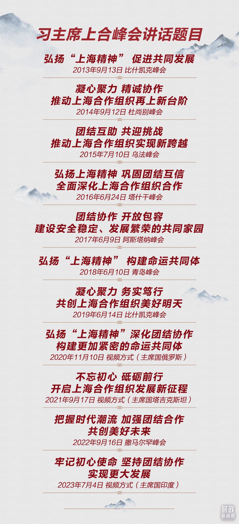 每次出席上合峰會(huì),習(xí)近平主席都發(fā)表重要講話,為上合組織發(fā)展壯大擘畫藍(lán)圖。