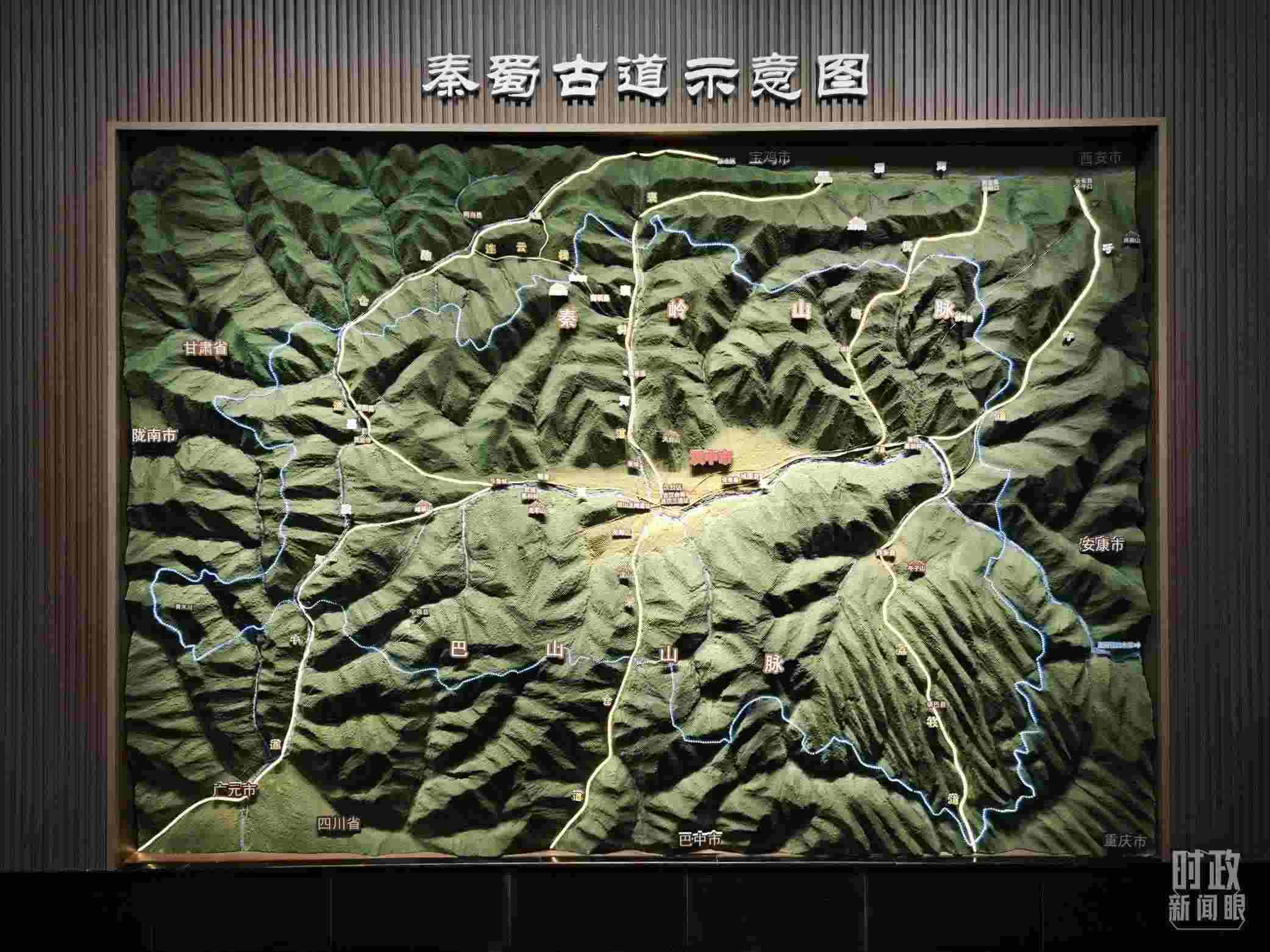 △漢中市博物館內(nèi)展示的秦蜀古道示意圖。(總臺央視記者黎兵拍攝)