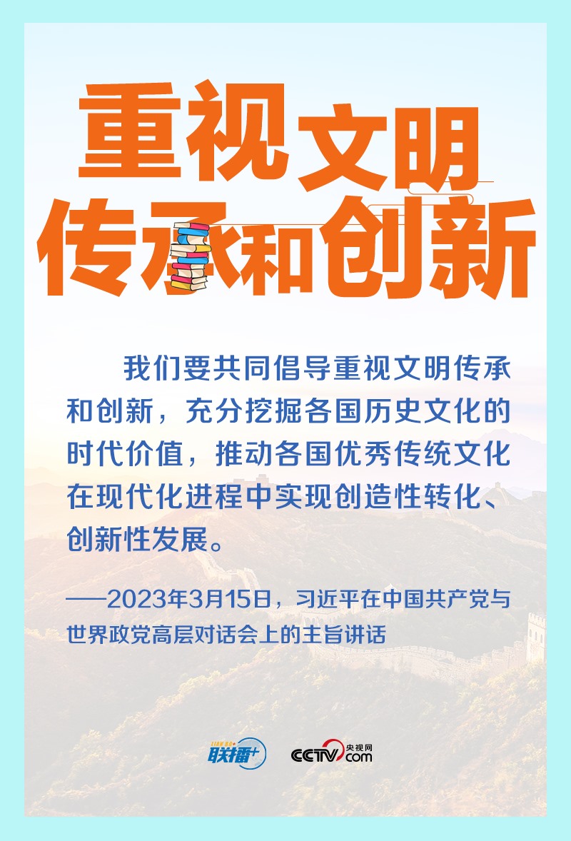 重視文明傳承和創(chuàng)新,是文明交流互鑒的動力源泉。2023年年初,習近平總書記在中國共產黨與世界政黨高層對話會上首次提出全球文明倡議,這是繼全球發(fā)展倡議、全球安全倡議后,新時代中國為國際社會提供的新的國際公共產品。