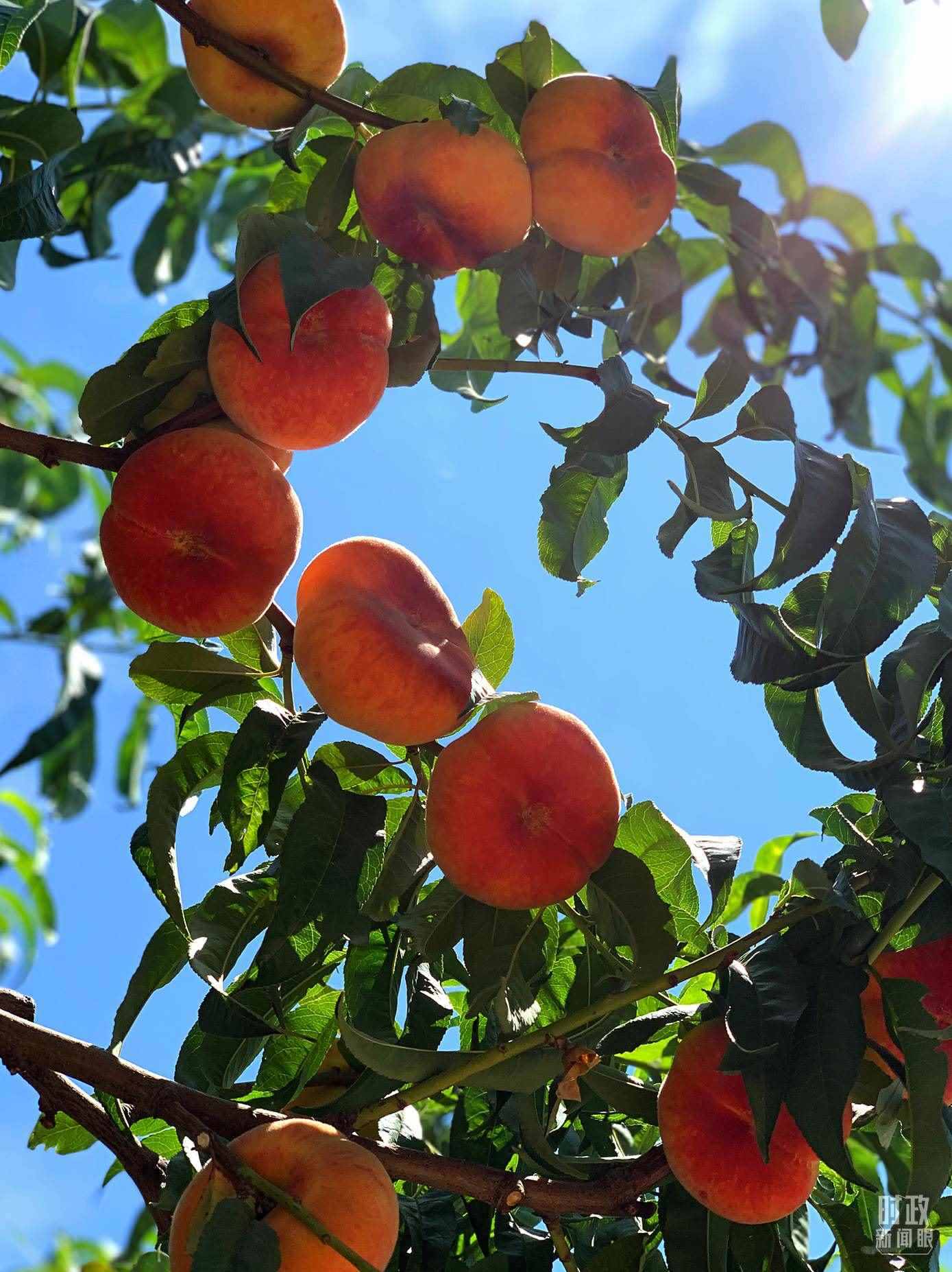 △新疆生產(chǎn)建設(shè)兵團(tuán)八師石河子市的一處蟠桃種植園,呈現(xiàn)豐收景象。(總臺央視記者段德文拍攝)