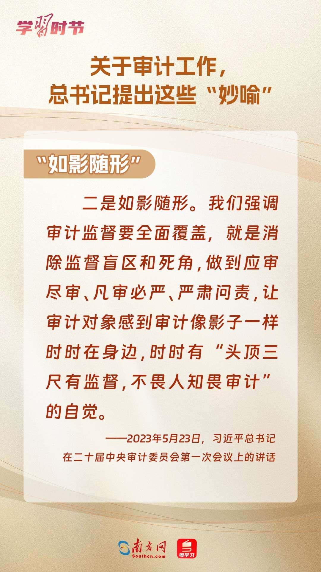 11月1日出版的《求是》雜志刊登了習(xí)近平總書記在二十屆中央審計(jì)委員會(huì)第一次會(huì)議上的講話全文??倳浽谥匾v話中“妙喻”審計(jì)工作,讓我們一同學(xué)習(xí)。