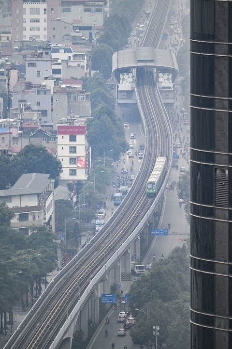2023年12月9日,列車在越南河內(nèi)吉靈-河?xùn)|輕軌線上行駛。河內(nèi)吉靈-河?xùn)|線輕軌由中國中鐵六局集團(tuán)有限公司承建,是中越兩國共建“一帶一路”的標(biāo)志性項目。新華社記者 程一恒 攝