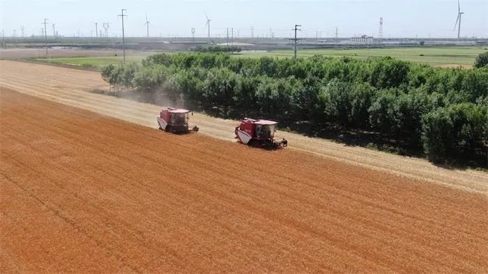 △6月9日,滄州渤海新區(qū)黃驊市仙莊片區(qū)旱堿麥開(kāi)鐮。