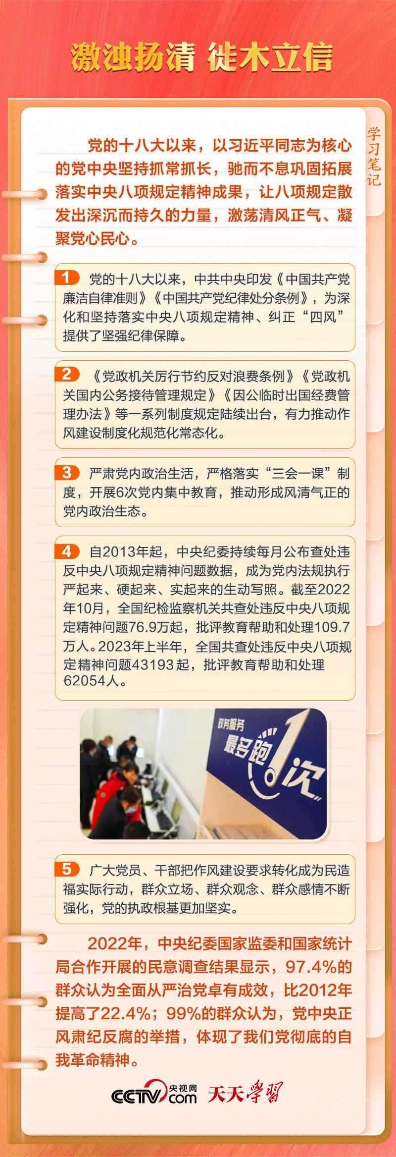在二十屆中央紀委二次全會上,習近平總書記指出:“制定實施中央八項規(guī)定,是我們黨在新時代的徙木立信之舉,必須常抓不懈、久久為功,直至真正化風成俗,以優(yōu)良黨風引領社風民風?!?/p>