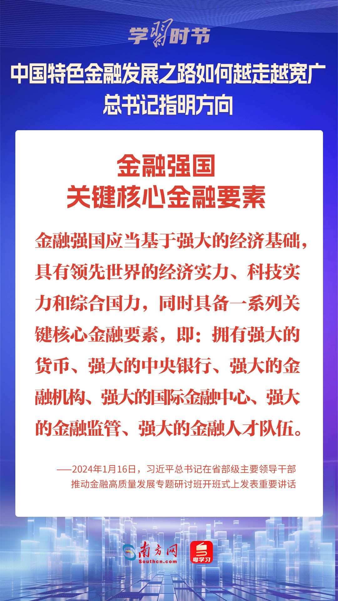 1月16日,中共中央總書記、國家主席、中央軍委主席習近平在省部級主要領導干部推動金融高質(zhì)量發(fā)展專題研討班開班式上發(fā)表重要講話,為中國特色金融發(fā)展之路指明方向。