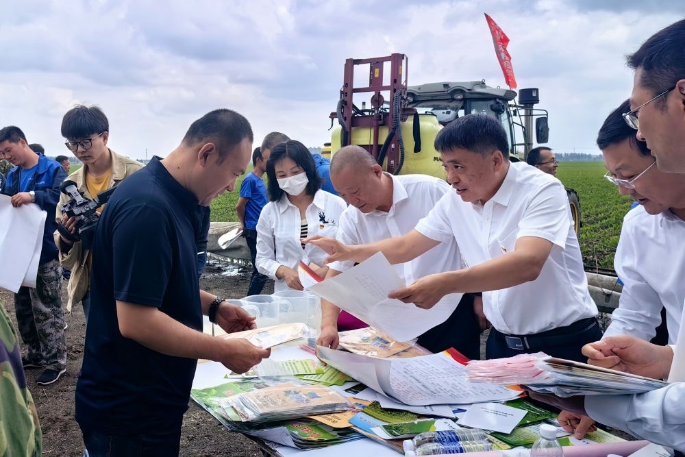 黑龍江省農(nóng)業(yè)農(nóng)村廳種植業(yè)管理處工作人員在哈爾濱市雙城區(qū)地頭,向農(nóng)民發(fā)放科學(xué)用農(nóng)藥資料(2023年6月11日攝)。學(xué)習(xí)貫徹習(xí)近平新時代中國特色社會主義思想主題教育工作會議召開以來,黑龍江省農(nóng)業(yè)農(nóng)村廳種植業(yè)管理處將理論學(xué)習(xí)與實(shí)際工作相結(jié)合,深入“田間地頭”調(diào)查研究、深入推進(jìn)“千萬噸糧食增產(chǎn)計(jì)劃”,助力黑龍江省當(dāng)好維護(hù)國家糧食安全“壓艙石”,將主題教育成果融入到維護(hù)國家糧食安全的具體實(shí)踐中。新華社發(fā)