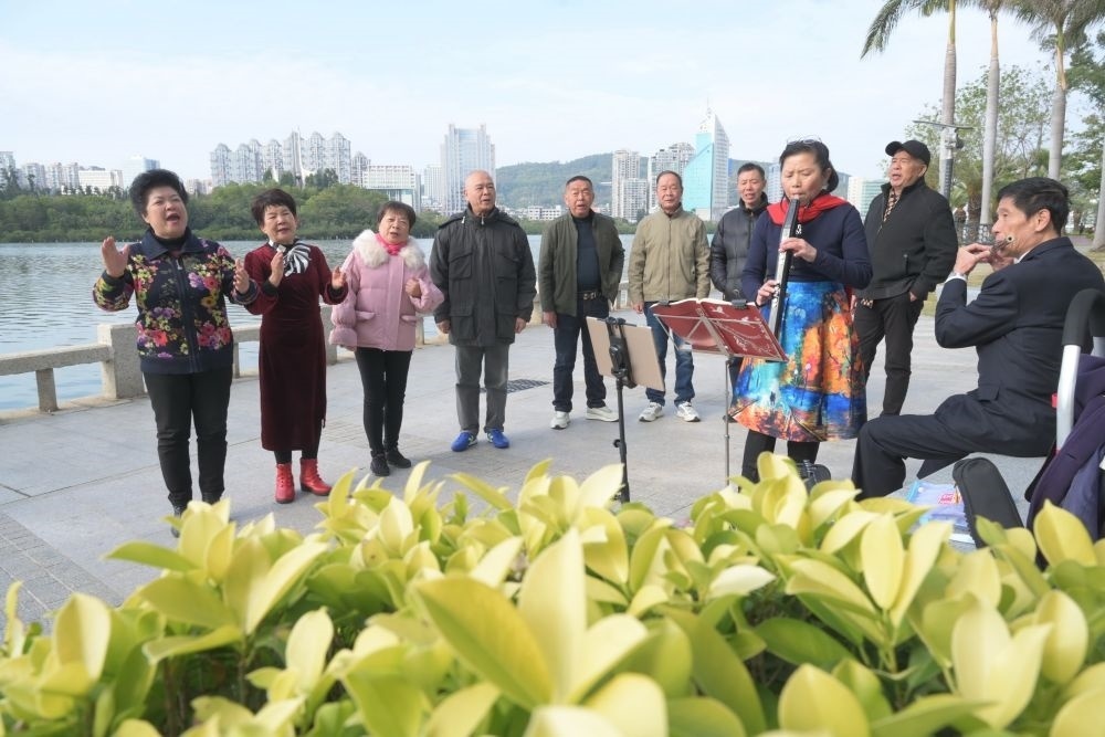 2024年1月24日,市民在位于廈門筼筜湖邊的南湖公園開展娛樂(lè)活動(dòng)。新華社記者 林善傳 攝