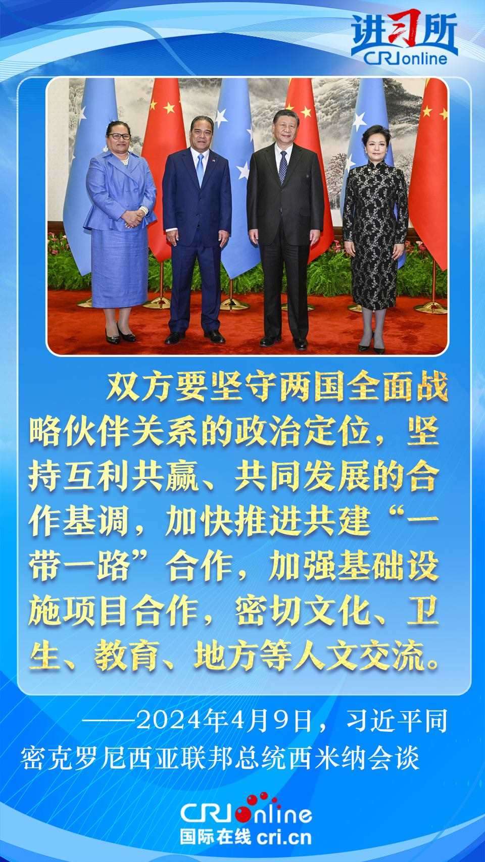 4月9日下午,中國國家主席習近平在北京同密克羅尼西亞聯(lián)邦總統(tǒng)西米納舉行會談,此訪是西米納總統(tǒng)就任以來首次訪華,兩國領導人就雙邊關系發(fā)展及共同關心的問題深入交換意見。