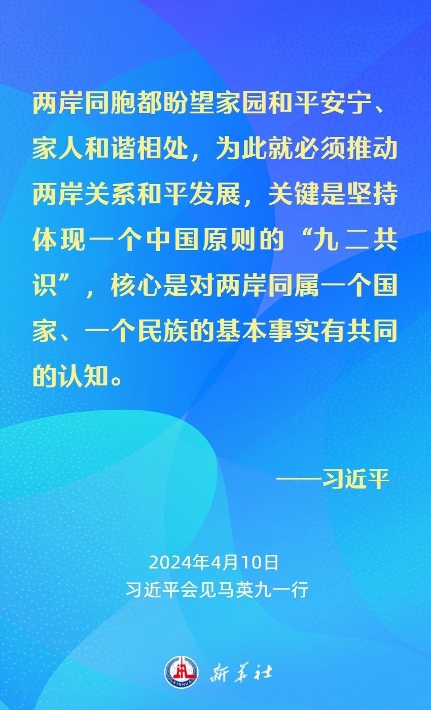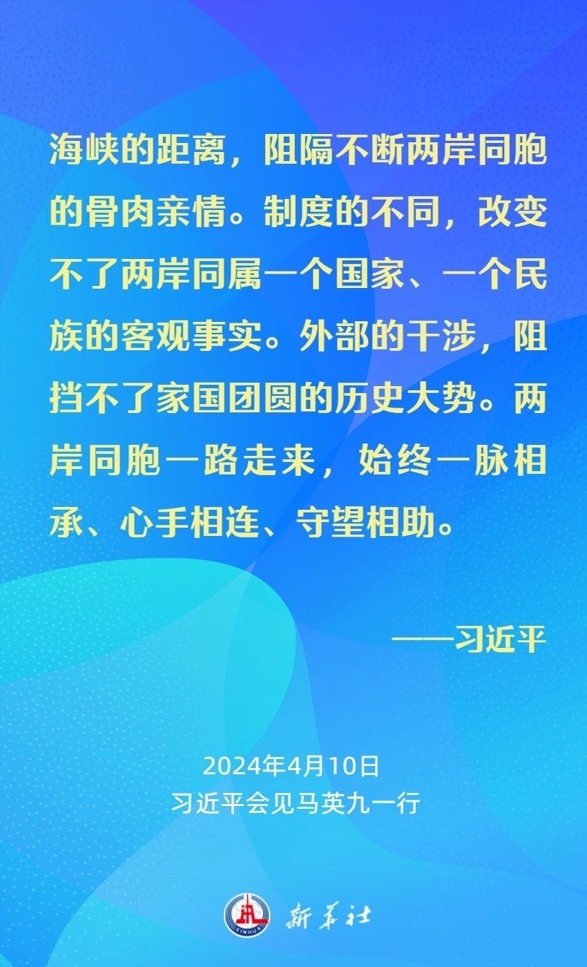 習近平強調(diào),兩岸同胞有共同的血脈、共同的文化、共同的歷史,更重要的是我們對民族有共同的責任、對未來有共同的期盼。我們要從中華民族整體利益和長遠發(fā)展來把握兩岸關(guān)系大局。