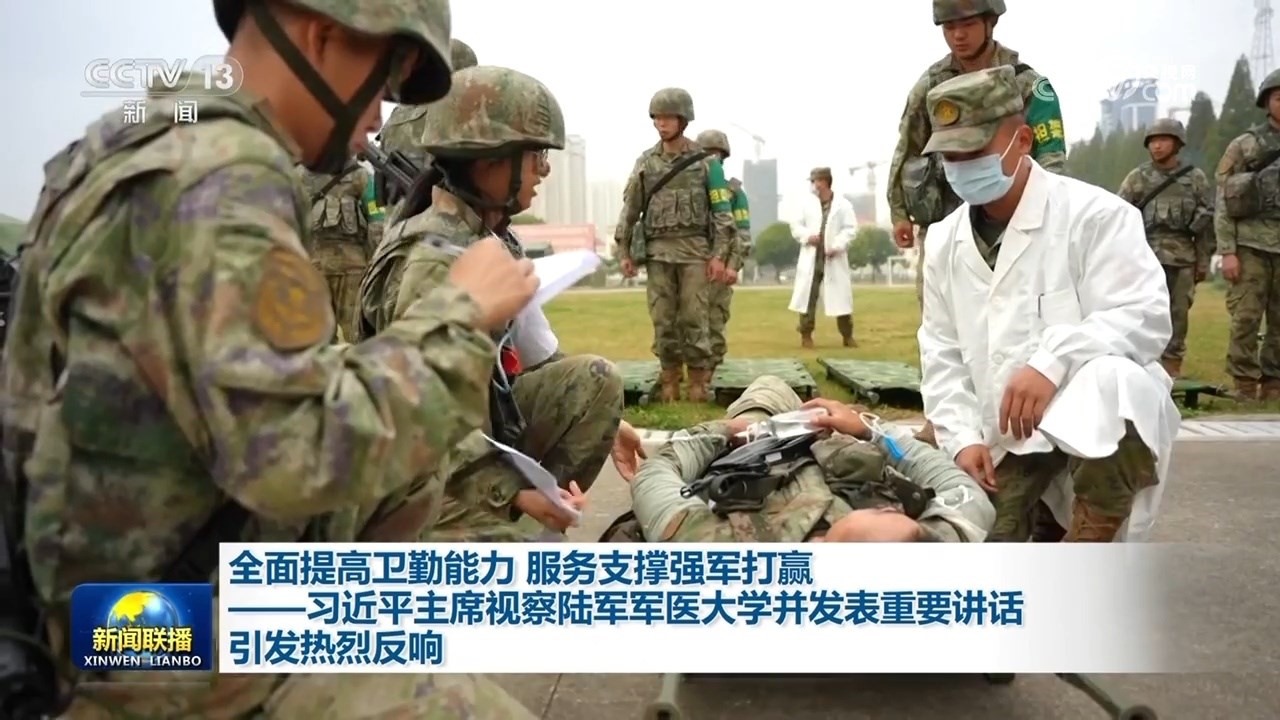 央視網(wǎng)消息(新聞聯(lián)播):中共中央總書記、國家主席、中央軍委主席習(xí)近平4月23日到陸軍軍醫(yī)大學(xué)視察,強(qiáng)調(diào)面向戰(zhàn)場、面向部隊、面向未來,努力建設(shè)世界一流軍醫(yī)大學(xué)。廣大官兵認(rèn)真學(xué)習(xí)領(lǐng)會講話精神,表示要牢記統(tǒng)帥勉勵囑托,聚焦練兵備戰(zhàn),加快創(chuàng)新發(fā)展,全面提升衛(wèi)勤保障能力,為強(qiáng)軍打贏提供有力支撐。