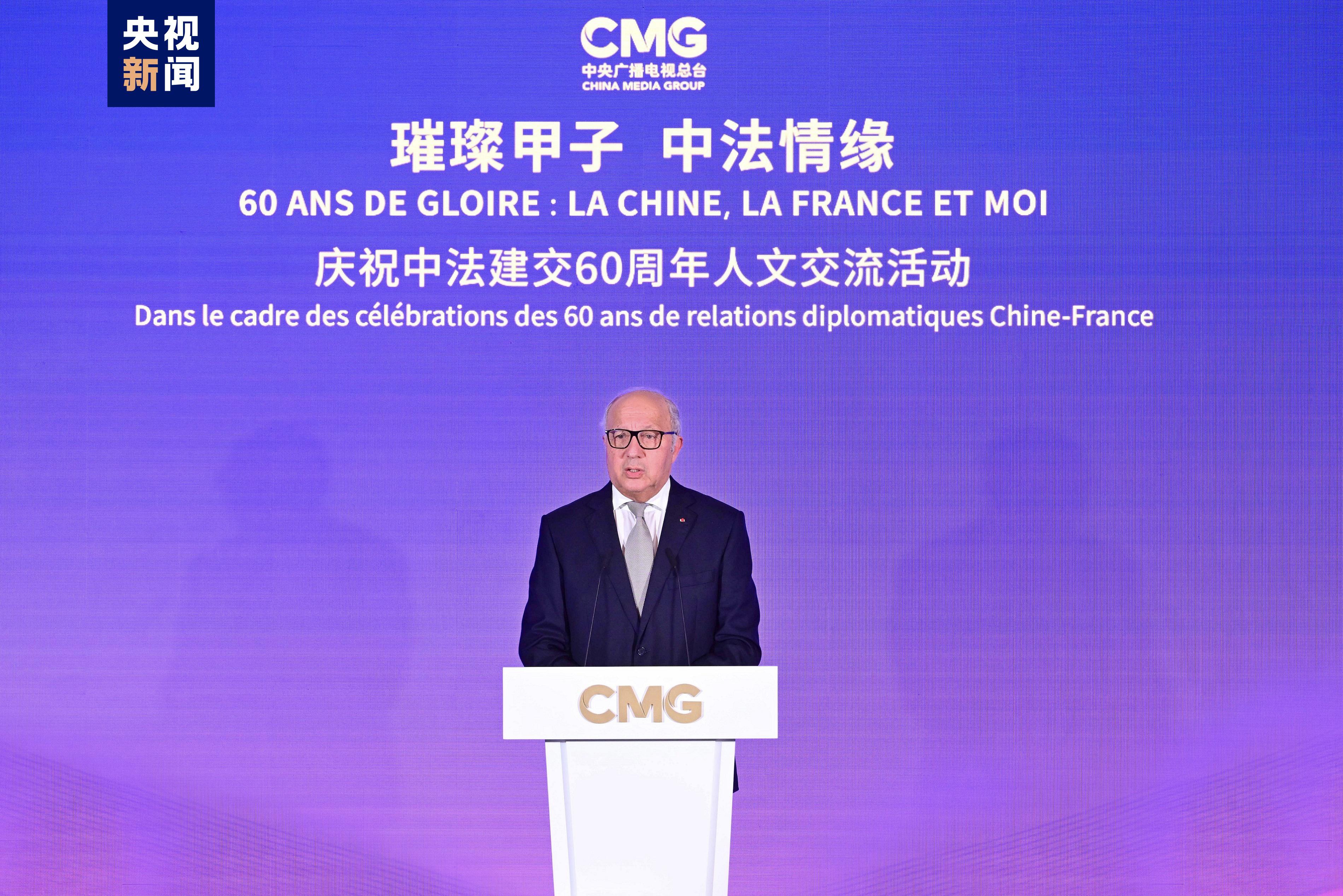 中宣部副部長、中央廣播電視總臺臺長慎海雄,法國前環(huán)境部長、聯(lián)合國前副秘書長拉隆德在活動(dòng)上致辭,并與歐洲新聞臺董事會主席戴維共同發(fā)布節(jié)目。法國國民議會法中友好小組主席阿洛澤出席活動(dòng)并致辭。
