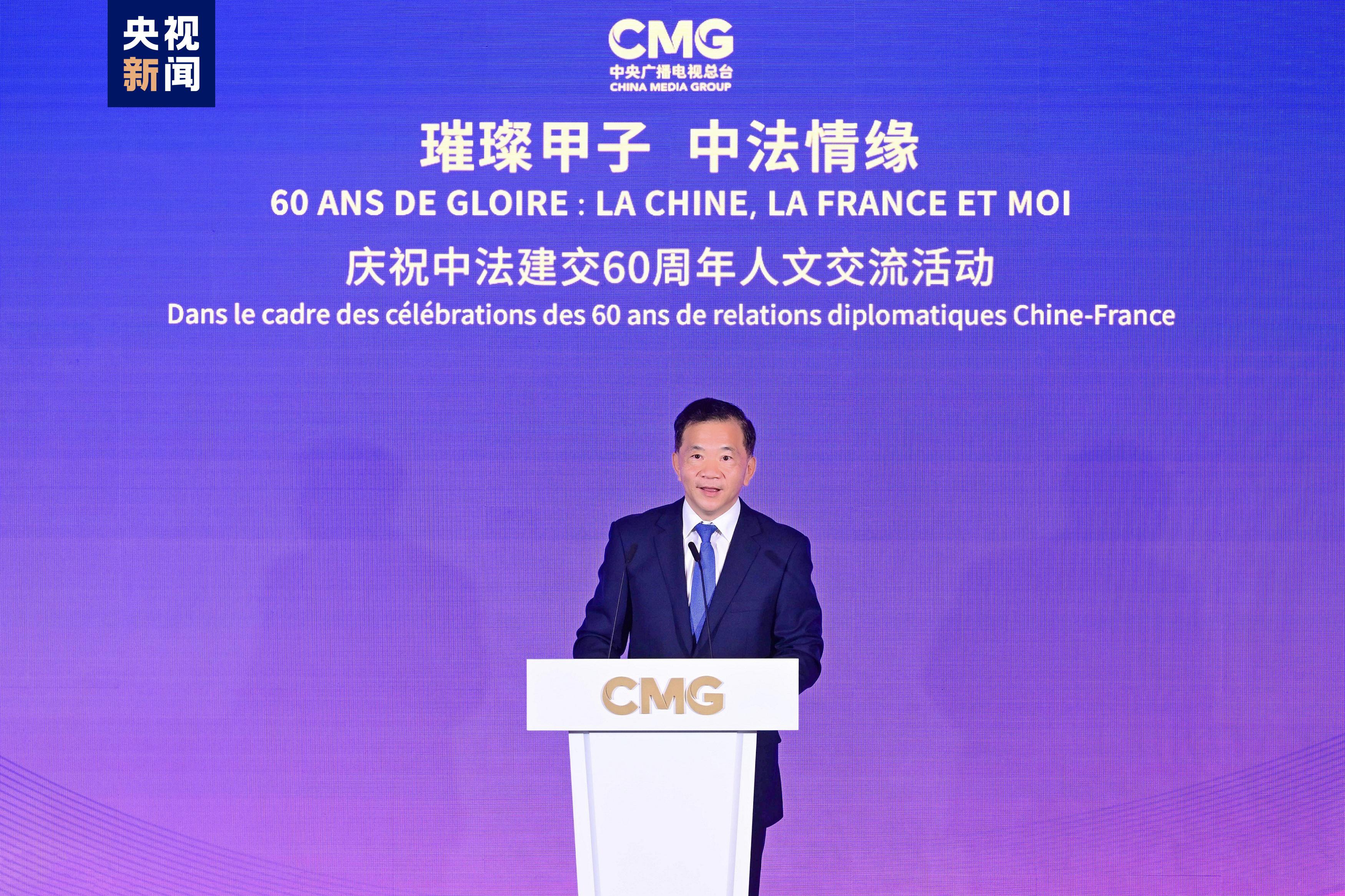 慎海雄表示,習(xí)近平主席指出,敢為人先、與時(shí)俱進(jìn)是中法關(guān)系始終走在中國同西方國家關(guān)系前列的重要法寶。法國是具有獨(dú)立見解、獨(dú)特個(gè)性的西方大國,不僅因其經(jīng)濟(jì)實(shí)力,還因國家品質(zhì)和人民氣節(jié),贏得了中國人民的尊重。建交60年來,中法兩國的友誼之船在兩國元首把舵定向下行穩(wěn)致遠(yuǎn)。人文交流貴在思想、文化的交匯、碰撞和吸引。中央廣播電視總臺精品節(jié)目《平“語”近人——習(xí)近平喜歡的典故》(國際版)在法國播出,為大家讀懂習(xí)主席的思想、中國文化、中國智慧打開一扇思想之窗,邀大家共賞璀璨輝煌的中華文明和新時(shí)代中國的獨(dú)特魅力。站在中法建交一甲子的歷史節(jié)點(diǎn),總臺愿與法國朋友們并肩同行,為打造更加牢固、更富活力的中法全面戰(zhàn)略伙伴關(guān)系、推動(dòng)構(gòu)建人類命運(yùn)共同體貢獻(xiàn)智慧和力量。