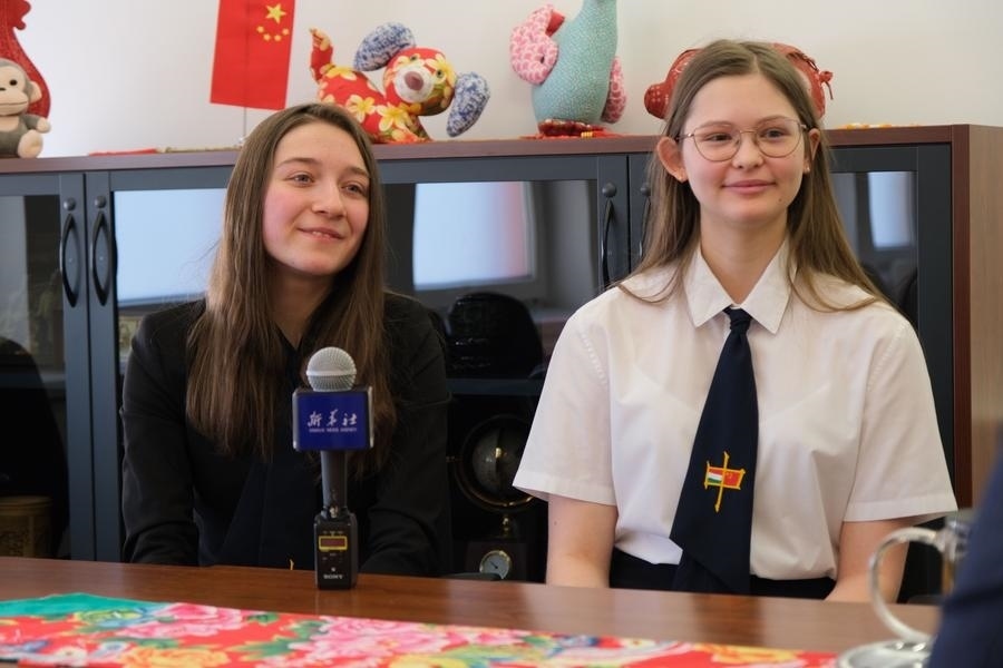 2023年2月7日,在匈牙利首都布達佩斯,匈中雙語學校學生胡靈月(左)和宋智孝接受新華社記者采訪。新華社記者 鄧耀敏 攝