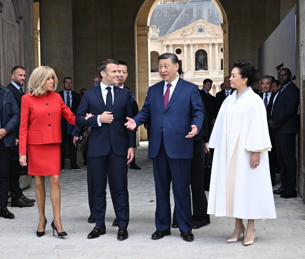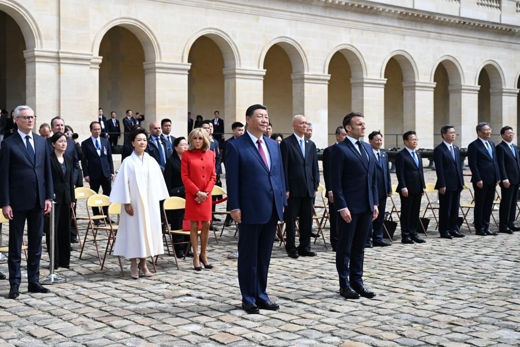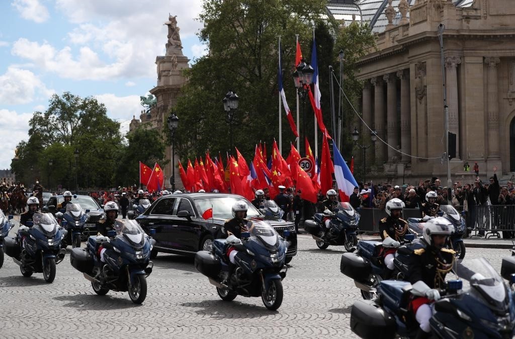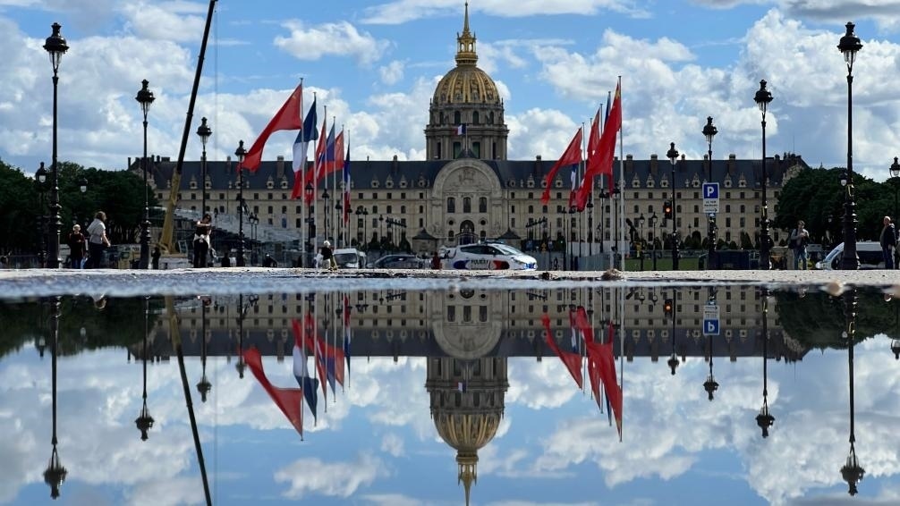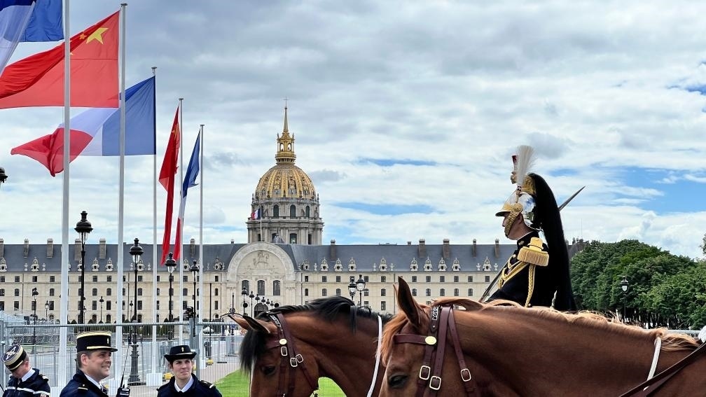 五月的巴黎,風(fēng)和景明。塞納河畔,榮軍院金色穹頂熠熠生輝,五星紅旗和藍(lán)白紅三色旗迎風(fēng)飄揚(yáng)。