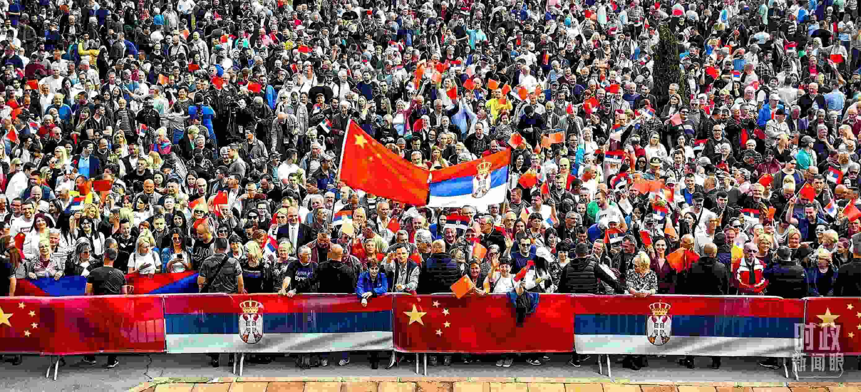 △一萬五千名塞爾維亞民眾齊聚塞爾維亞大廈廣場,熱烈歡迎習(xí)主席到訪。(總臺央視記者段德文拍攝)