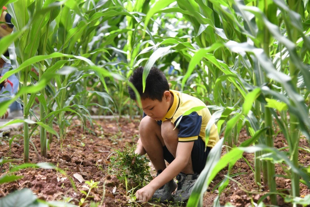 5月31日,老師帶領(lǐng)學生在之江小學勞動實踐基地學習蔬菜知識。
