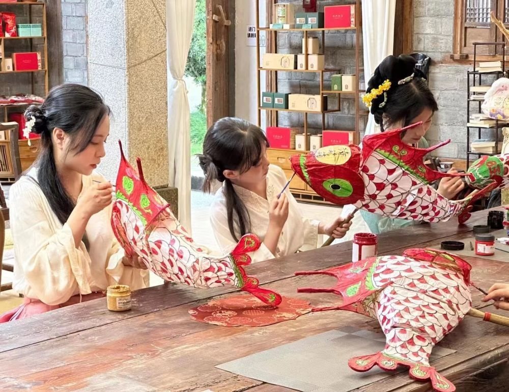 游客在西溪南村體驗(yàn)制作魚(yú)燈。(受訪(fǎng)者供圖)