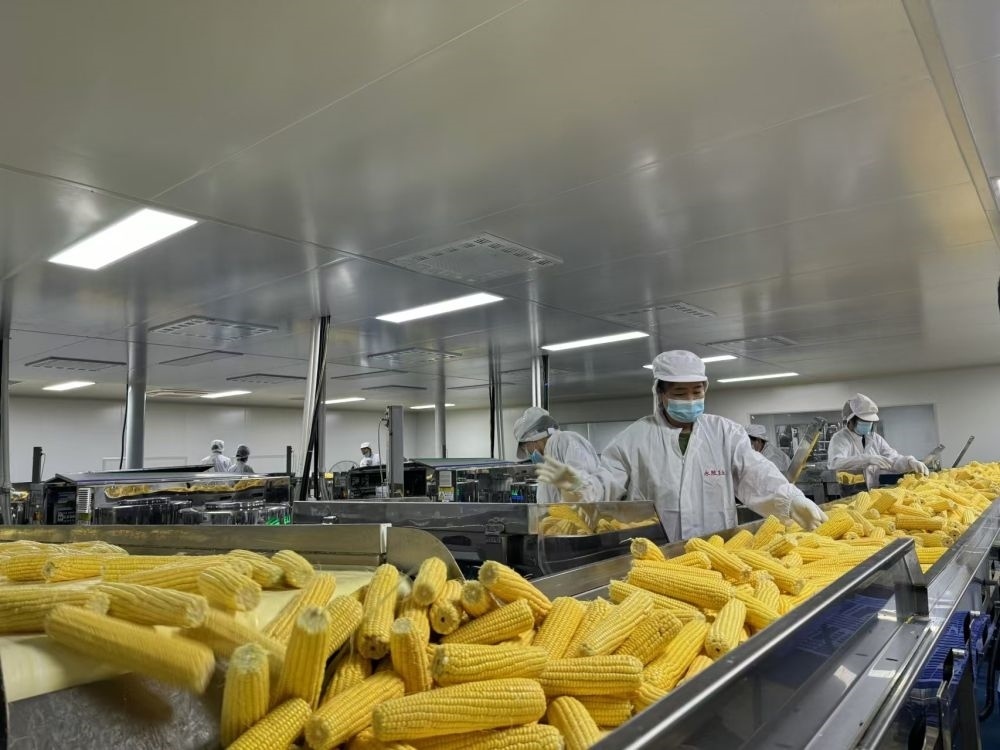 合作社開(kāi)辦的鮮食玉米加工車(chē)間中,收獲的玉米經(jīng)過(guò)脫皮、挑選運(yùn)送到車(chē)間,再經(jīng)過(guò)清洗、蒸煮、包裝等環(huán)節(jié),做成鮮食玉米銷(xiāo)往全國(guó)各地。
