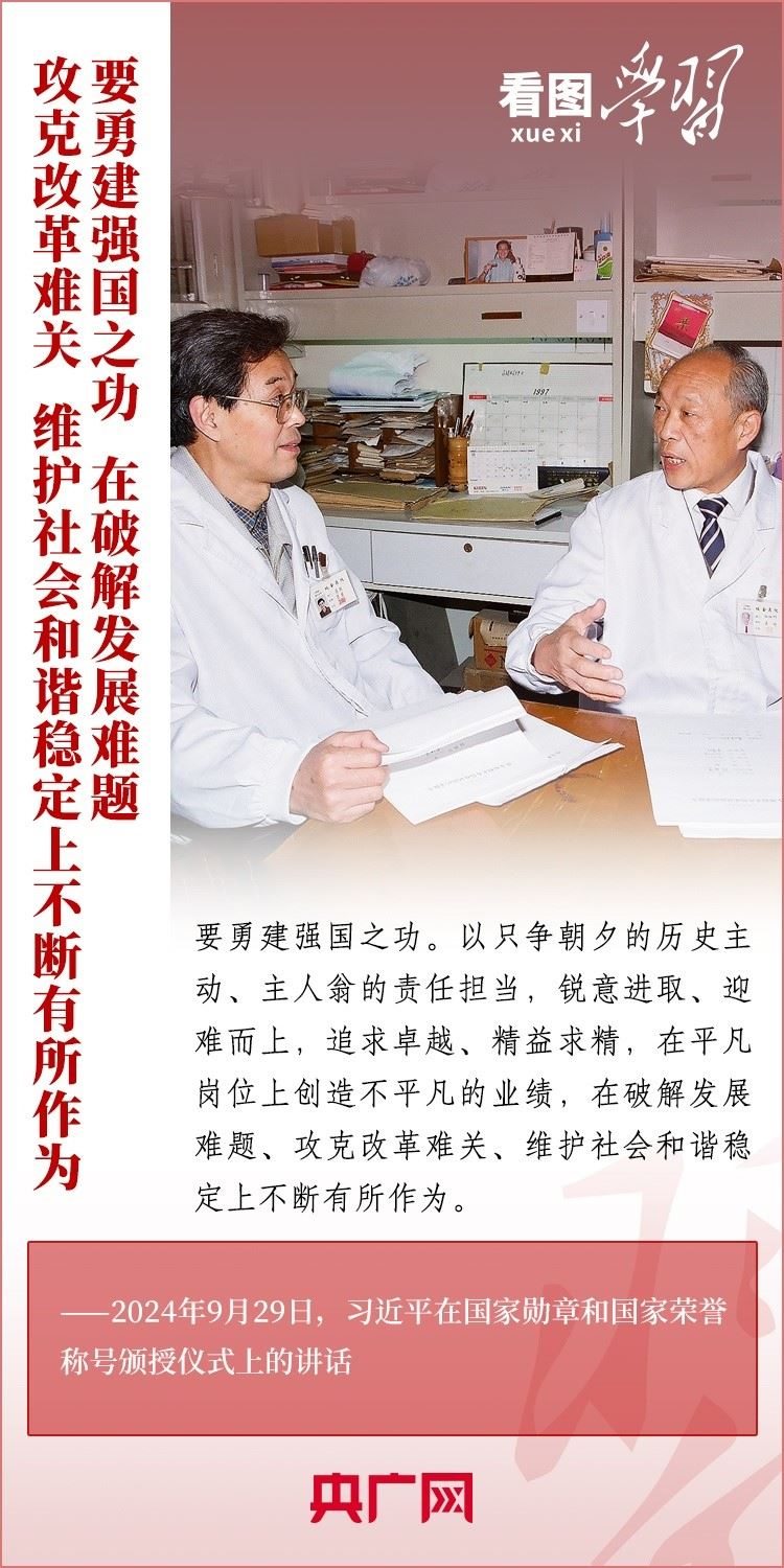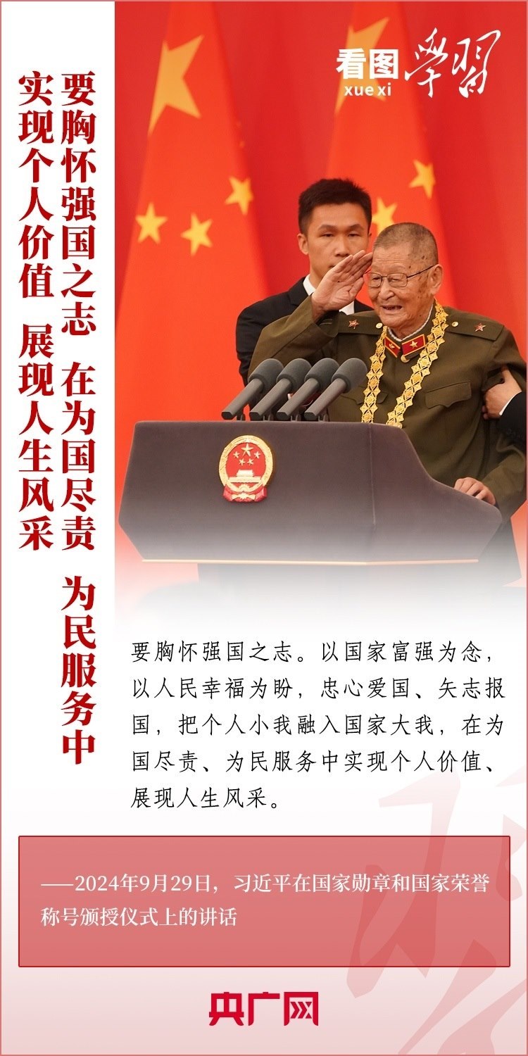9月29日,中華人民共和國國家勛章和國家榮譽(yù)稱號(hào)頒授儀式在北京舉行,習(xí)近平總書記向國家勛章和國家榮譽(yù)稱號(hào)獲得者頒授勛章獎(jiǎng)?wù)虏l(fā)表重要講話??倳洀?qiáng)調(diào),全黨全國各族人民要以英雄模范為榜樣,團(tuán)結(jié)奮進(jìn)、砥礪前行,匯聚起共襄強(qiáng)國盛舉的磅礴力量。一起來學(xué)習(xí)!