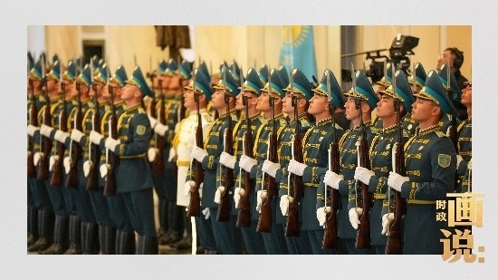 當(dāng)?shù)貢r間3日,國家主席習(xí)近平在阿斯塔納出席哈薩克斯坦總統(tǒng)托卡耶夫在總統(tǒng)府舉行的歡迎儀式。習(xí)近平主席乘車抵達時,托卡耶夫總統(tǒng)熱情迎接,以最高禮儀歡迎習(xí)近平主席對哈薩克斯坦進行國事訪問。