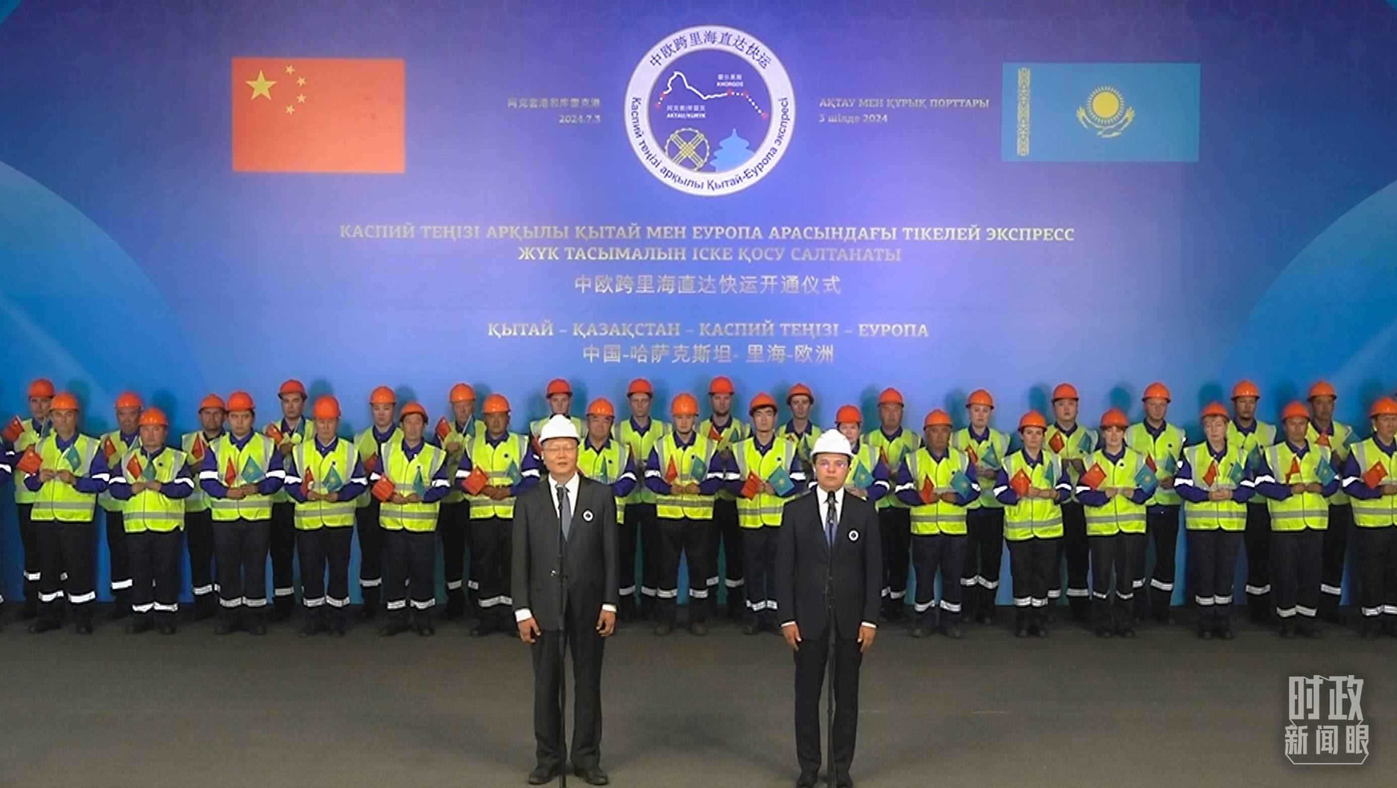 一場是兩國元首以視頻方式出席中歐跨里海直達(dá)快運(yùn)開通儀式。