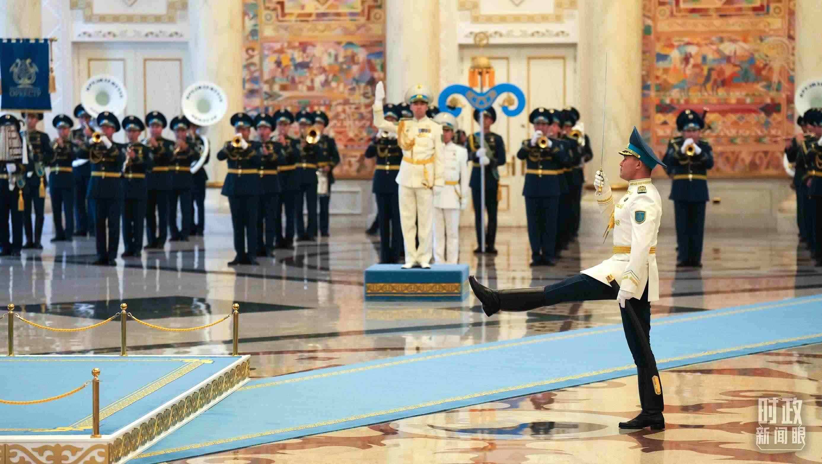 △哈薩克斯坦總統(tǒng)府禮兵。(總臺(tái)央視記者程鋮、蔣碩拍攝)