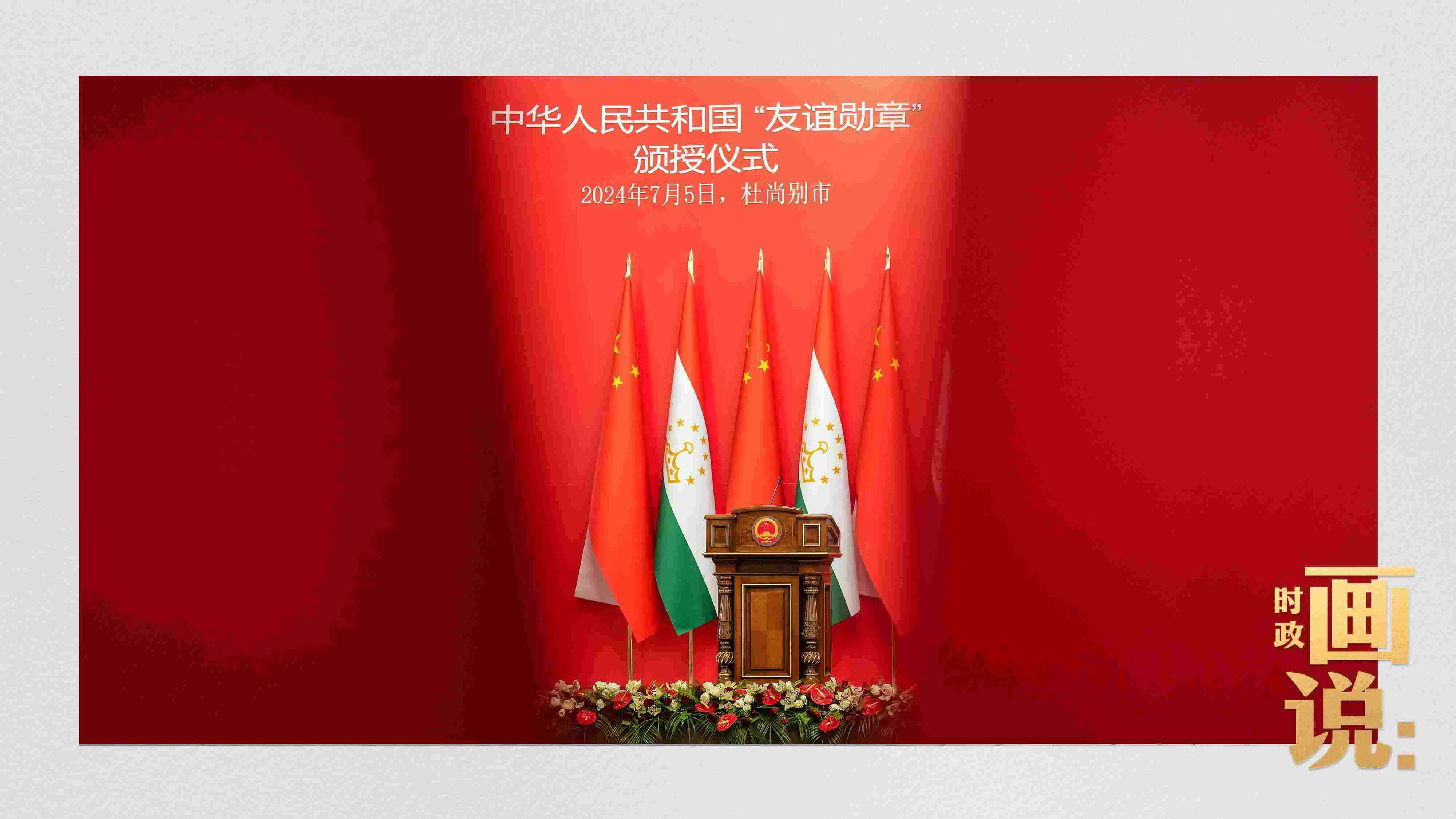 當?shù)貢r間7月5日下午,國家主席習近平在杜尚別總統(tǒng)府向塔吉克斯坦總統(tǒng)拉赫蒙頒授“友誼勛章”。這是中國首次在境外頒授“友誼勛章”,是為表達中國人民對拉赫蒙總統(tǒng)和塔吉克斯坦人民友好感情作出的特殊安排。