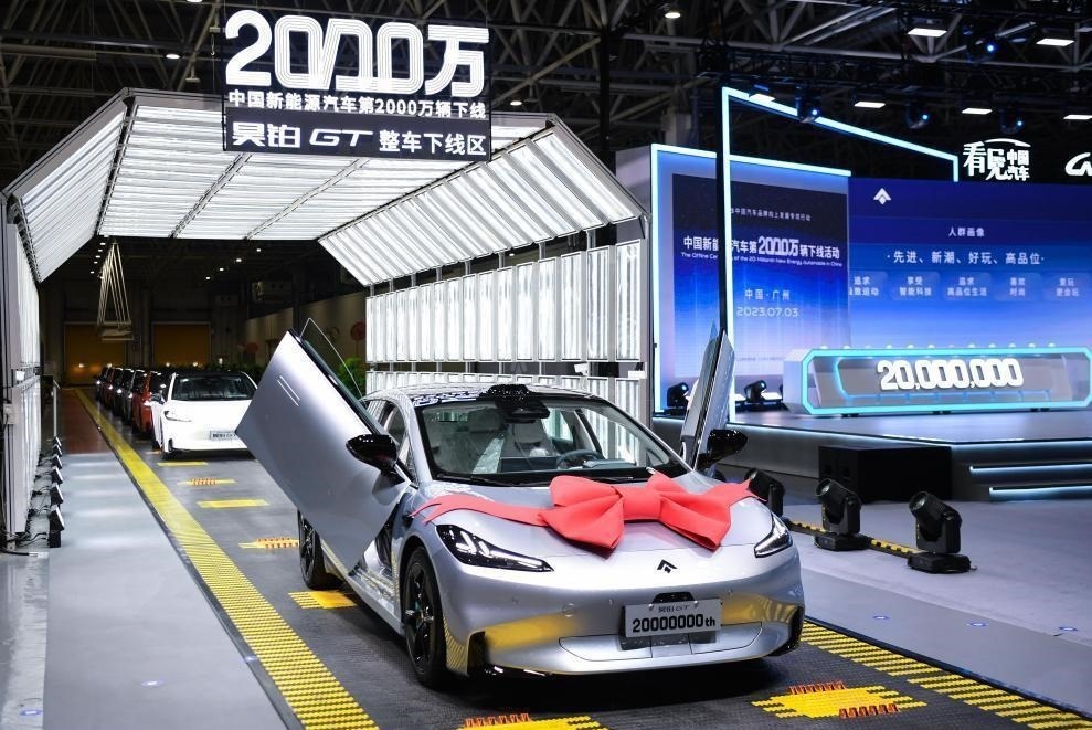 △2023年7月3日,我國第2000萬輛新能源汽車在廣州下線。