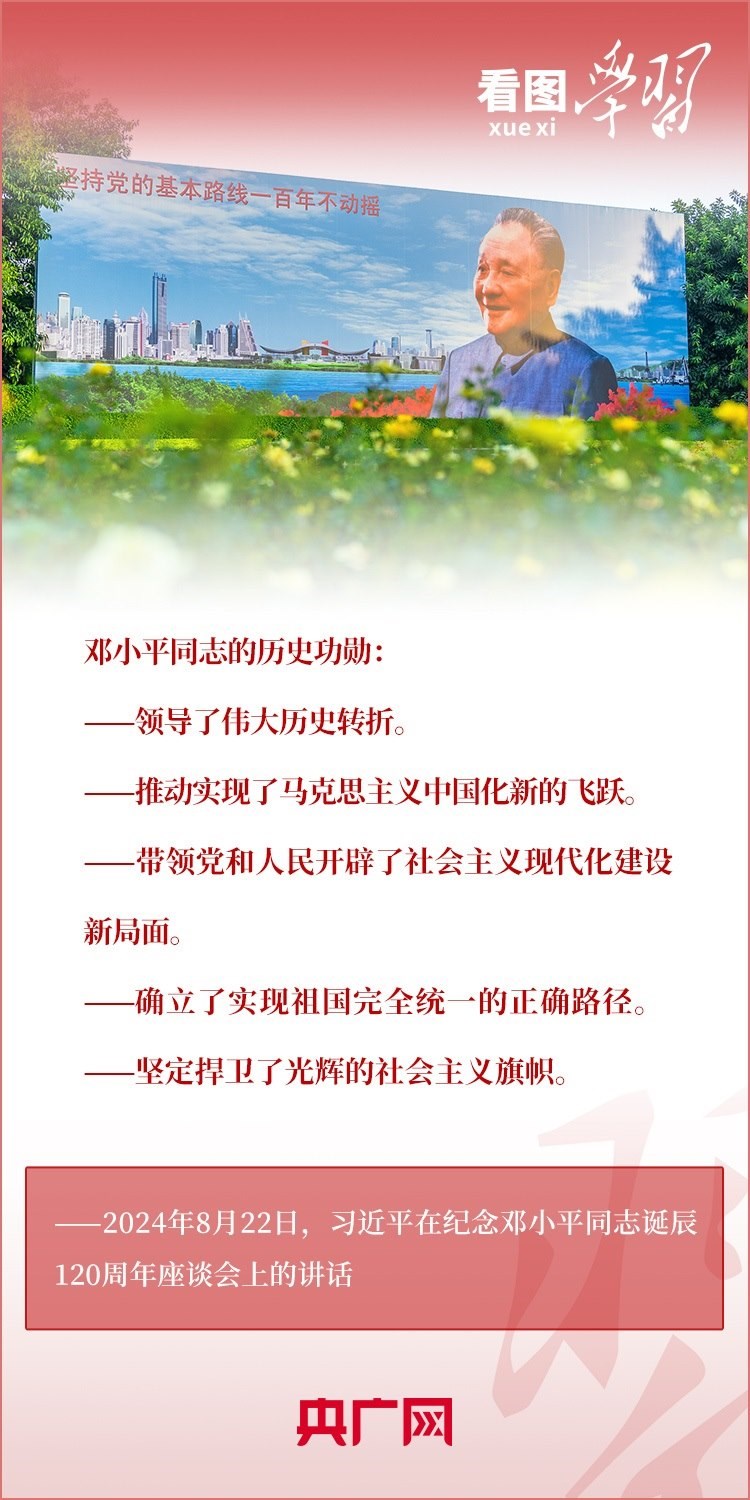 8月22日,習(xí)近平總書記在紀(jì)念鄧小平同志誕辰120周年座談會(huì)上發(fā)表重要講話指出,鄧小平同志的歷史功勛是全方位的、開創(chuàng)性的,對(duì)中國(guó)和世界的影響是深刻的、長(zhǎng)遠(yuǎn)的??倳洀?qiáng)調(diào),對(duì)鄧小平同志最好的紀(jì)念,就是把他開創(chuàng)的中國(guó)特色社會(huì)主義事業(yè)繼續(xù)推向前進(jìn)。我們要緊緊圍繞以中國(guó)式現(xiàn)代化全面推進(jìn)強(qiáng)國(guó)建設(shè)、民族復(fù)興偉業(yè)這個(gè)中心任務(wù),繼往開來,奮發(fā)進(jìn)取。一起來學(xué)習(xí)!