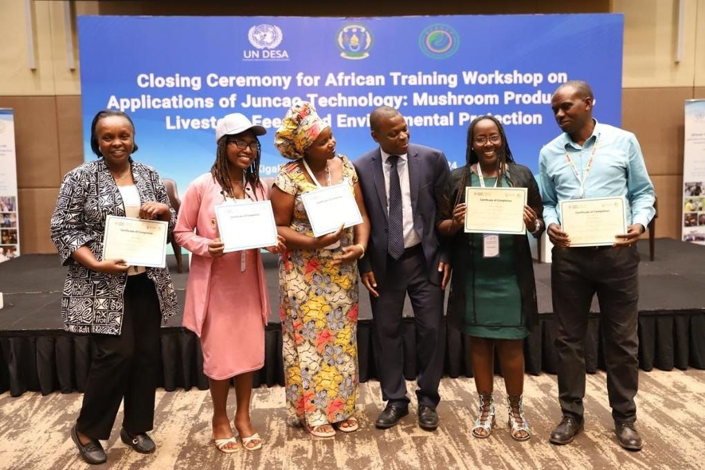 8月初,在非洲地區(qū)菌草技術(shù)培訓(xùn)班舉辦期間,聯(lián)合國官員和使團(tuán)代表團(tuán)專程赴盧旺達(dá)考察菌草技術(shù)和產(chǎn)業(yè)在非洲地區(qū)的發(fā)展?!拔液芨吲d同其他聯(lián)合國官員一起,親眼見證菌草技術(shù)以實(shí)際行動造福民眾?!甭?lián)合國秘書長辦公室主任考特尼·拉特雷說,菌草技術(shù)具有“可負(fù)擔(dān)”的突出優(yōu)勢,“對非洲大陸所有發(fā)展中國家很有價(jià)值、非常適用”。