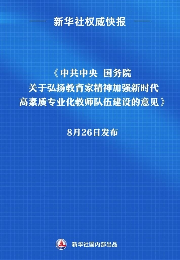 《中共中央 國務院關于弘揚教育家精神加強新時代高素質專業(yè)化教師隊伍建設的意見》8月26日發(fā)布。