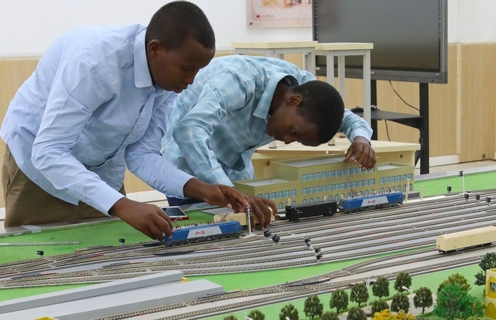 2022年9月19日,在位于吉布提首都吉布提市的吉布提工商學(xué)校,學(xué)生在魯班工坊鐵道運營沙盤教學(xué)區(qū)學(xué)習(xí)。新華社記者 董江輝 攝