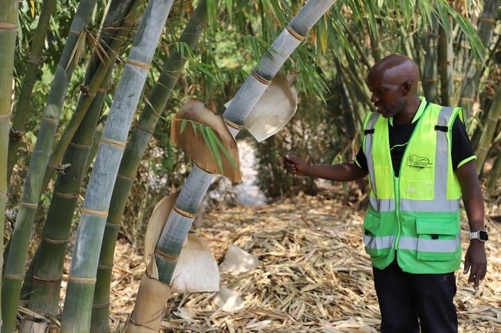 2024年8月5日,在烏干達西部姆巴拉拉市的竹子種植園,阿比·史蒂夫·圖西梅在料理竹子。新華社發(fā)(羅納德·塞坎迪攝)