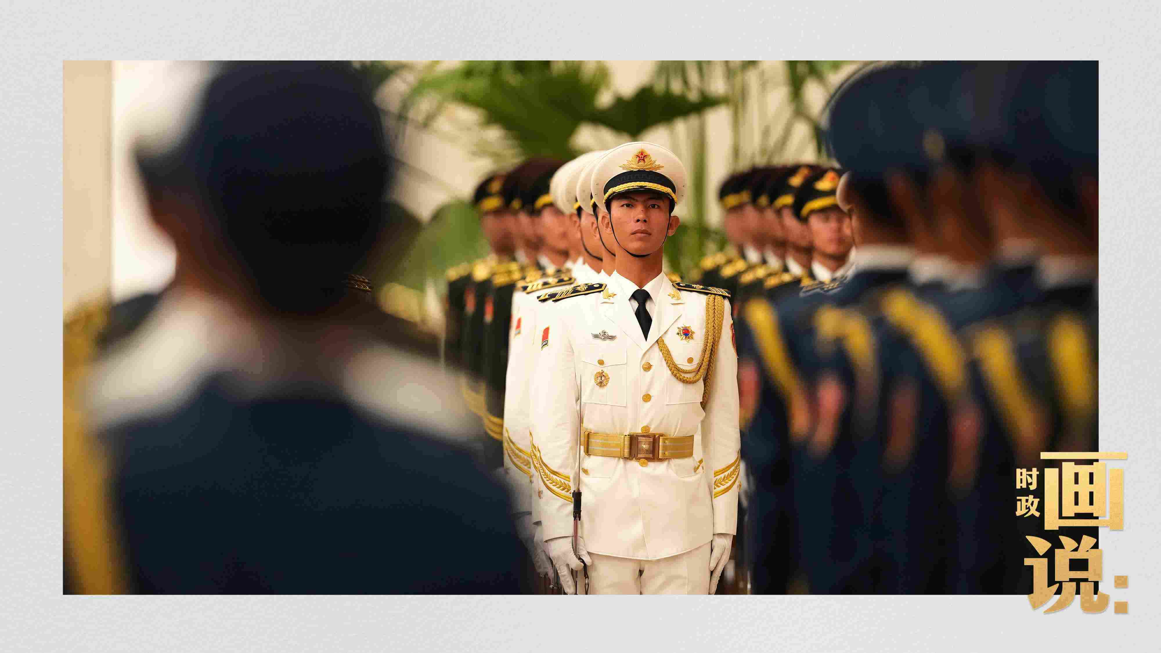 △南非總統(tǒng)拉馬福薩檢閱中國(guó)人民解放軍三軍儀仗隊(duì)。